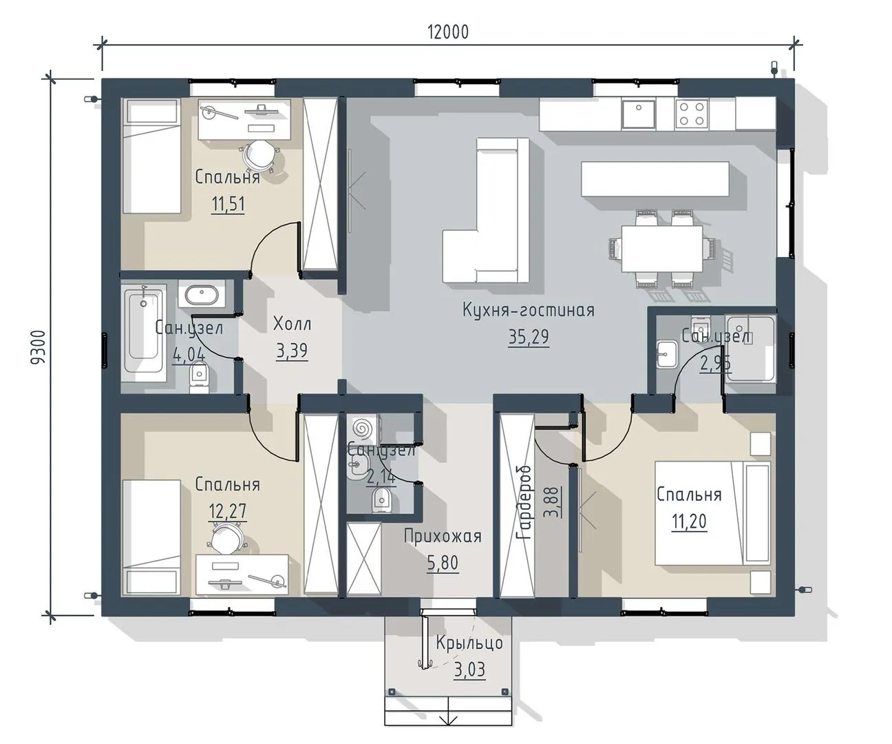 Представляем один из самых светлых и уютных вариантов проживания в пригороде — одноэтажный дом СР‑112. Его европейская архитектура подчёркивает аккуратность линий и гармоничное сочетание функциональности и эстетики, создавая атмосферу домашнего комфорта с первой минуты. Просторный внутренний план позволяет легко расставить мебель и создать место, где каждый член семьи почувствует себя как дома, а гости будут в восторге от простого, но изысканного интерьера. Газобетонные блоки, использованные в фасаде, обеспечивают надёжную тепло- и звукоизоляцию, а четыре скатные крыши дарят зданию характерный внешний вид и изобилие естественного света. К дому применён исключительно качественный строительный материал, который противостоит резким климатическим изменениям: ваш дом будет сохранять тепло в зимний период и оставаться прохладным летом. Хотите уют, но не хотите компромиссов по пространству? СР‑112 — это идеальное решение: он прекрасно подходит для круглогодичного проживания, не требует дополнительных строительных инвестиций в гараж, террасу или чердачное помещение. Уютный интерьер, европейская эстетика и практичная конструкция в одном — ваш новый дом уже ждет вас, чтобы воплотить мечты о просторе, комфорте и стиля.