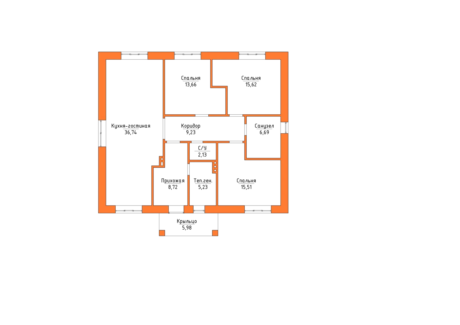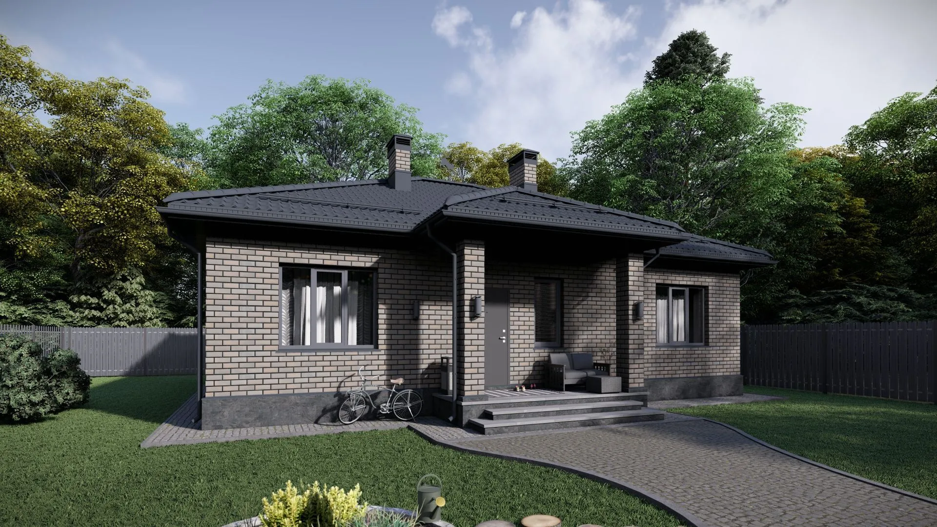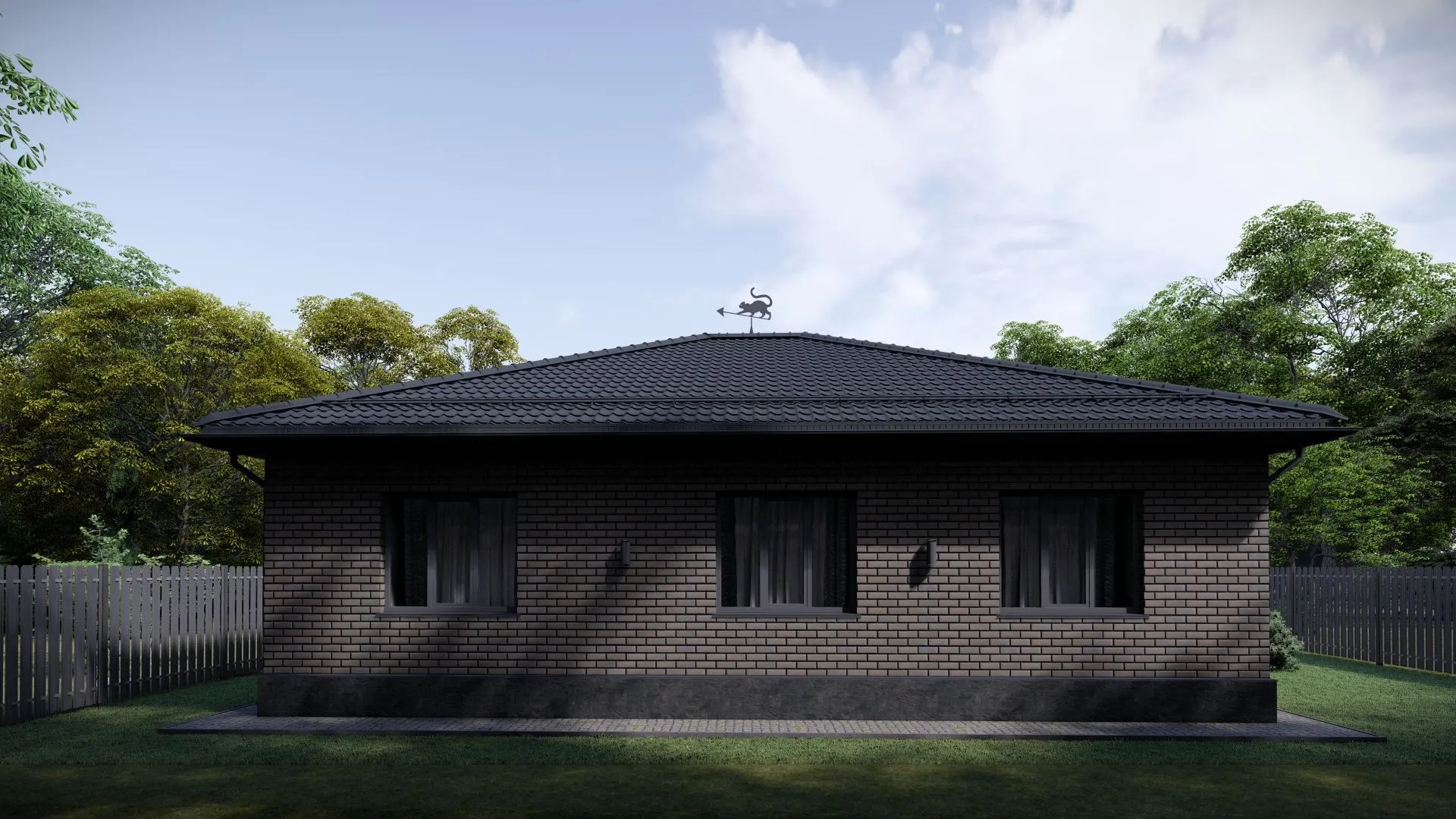 **Дом “SUNSET” — ваш уютный уголок в любой сезон** Представьте себе идеальное сочетание европейской элегантности и практичности: одноэтажный дом “SUNSET” радует простотой планировки и уютом, который ощущается от первого шага. Крепко выстроенные кирпичные стенки создают атмосферу надёжности и тёплого домашнего очага, а четырёхскатная (вальмовая) кровля защищает от ветра и дождя, сохраняя тепло в течение всего года. Такой дом легко вписываться в любой природный ландшафт, не требуя лишних ухаживаний по внешнему виду. Внутренний планировка продумана с любовью к комфорту: светлые большие комнаты, современная кухня по открытой схеме с барной стойкой, где можно встретиться с друзьями, и уютные спальни, идеально подходящие для семейной жизни. Тёплый цвет кирпича и изящные европейские детали придают интерьеру утончённость, а отсутствие внешних балконов и веранд подчёркивает чистую простоту пространства, где каждый сантиметр использован эффективно. Это идеальная обитель для тех, кто ценит уют, тепло и надёжность без излишних украшений.