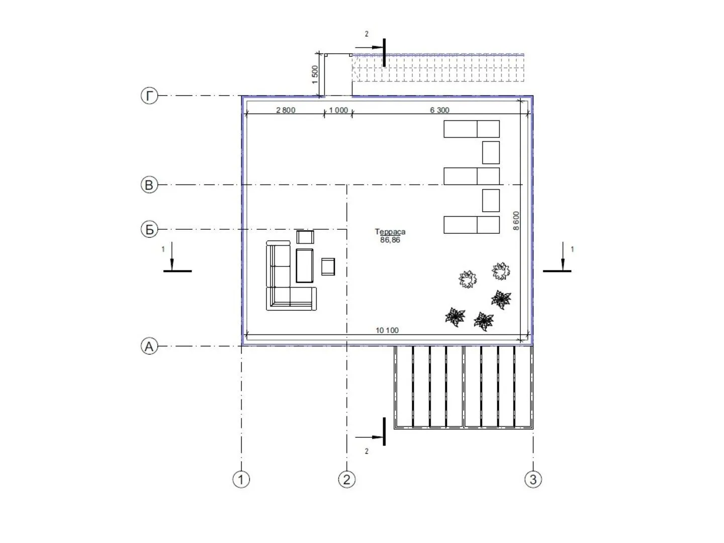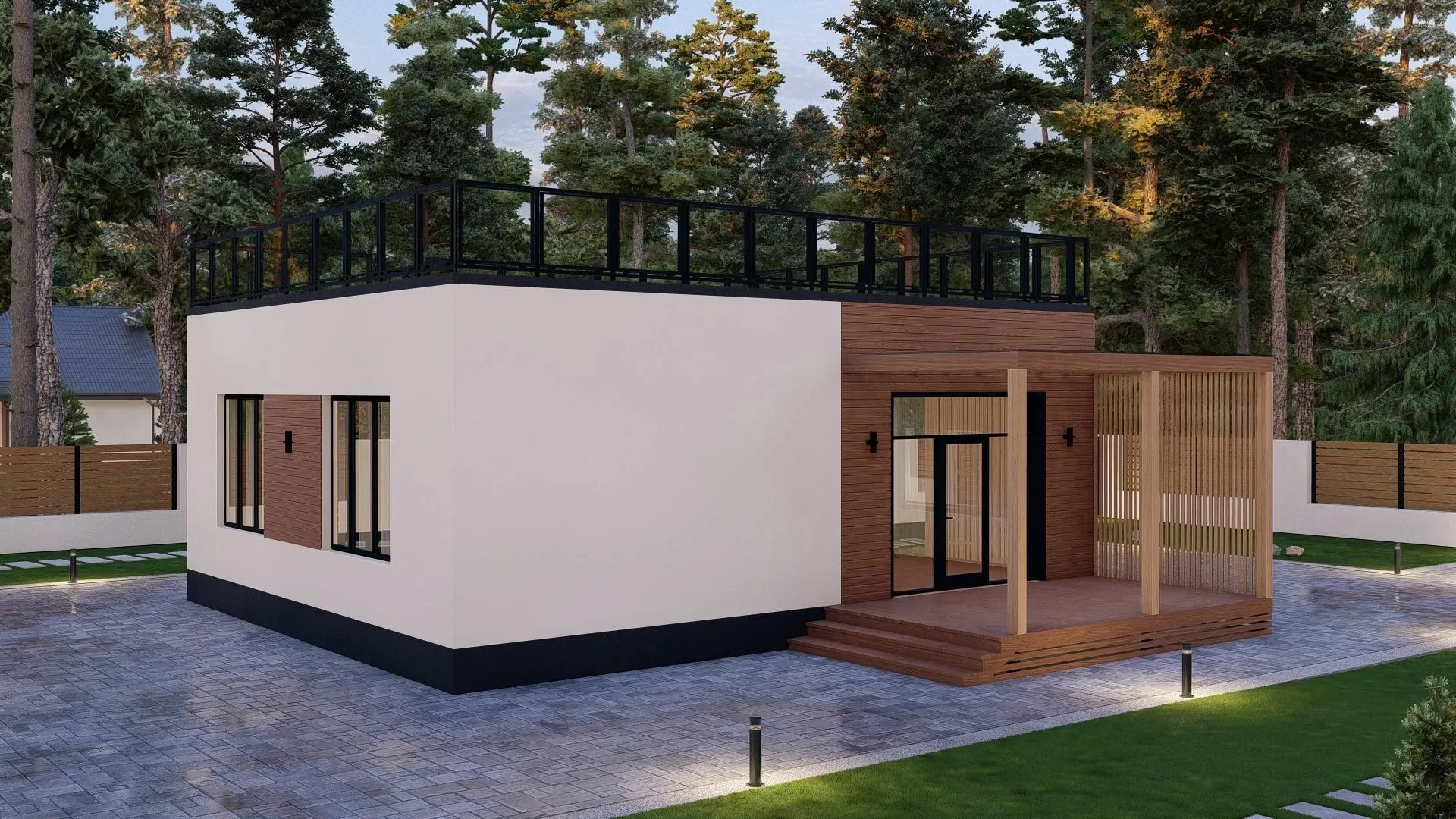 Заказать конусльтацию по:Одноэтажный дом террасой на крыше ДПБ34