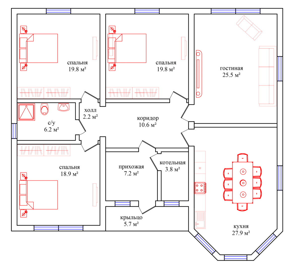 Одноэтажный Дом (ТРИО) 12,9х14,1 141,9м2