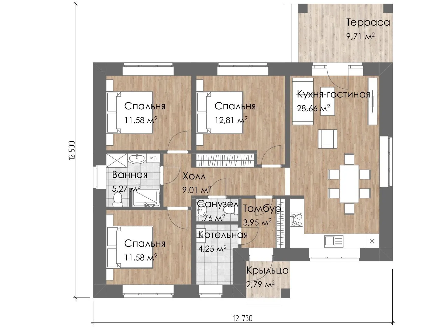 Одноэтажный дом «Тулуза» 100м2
