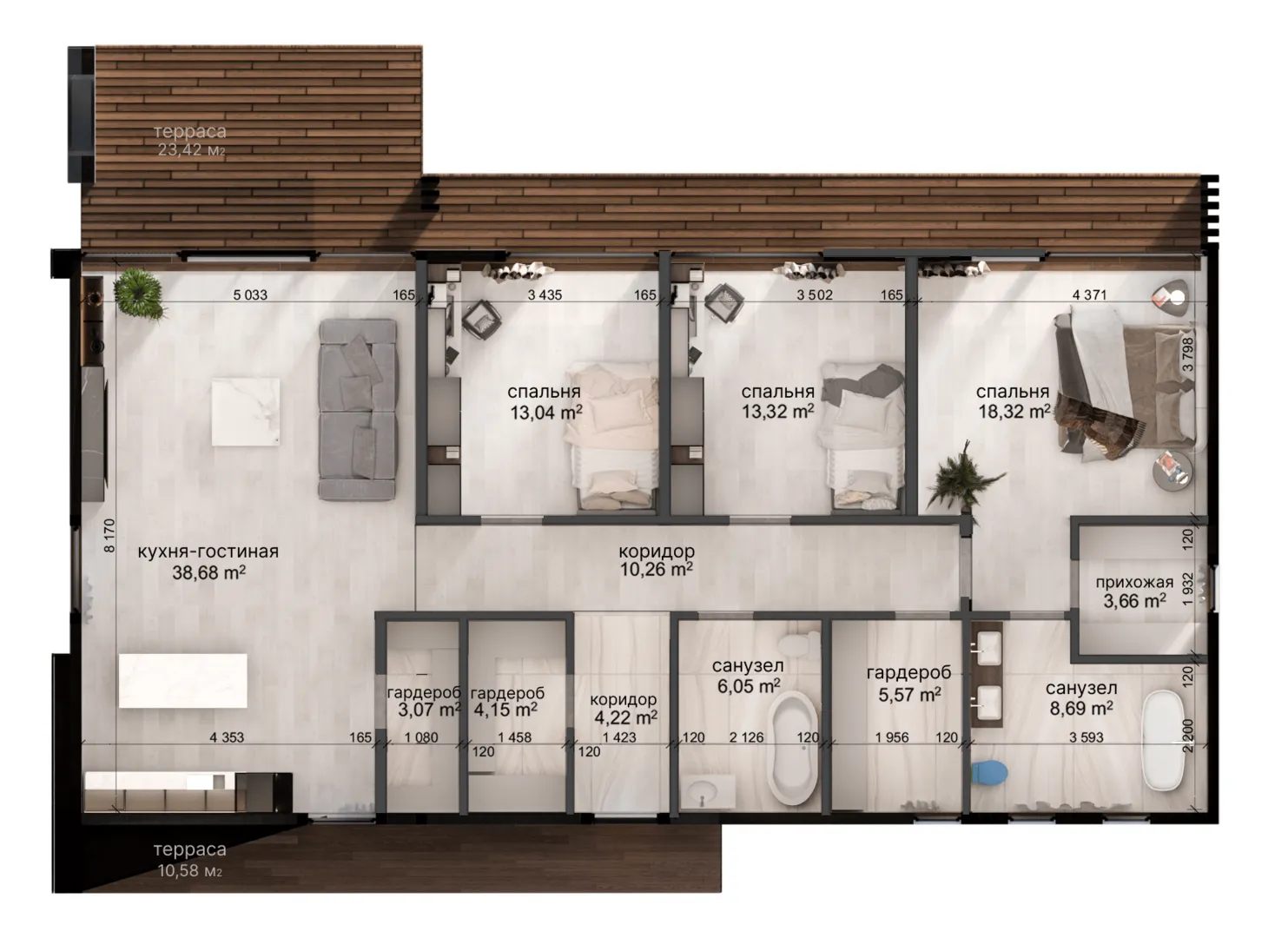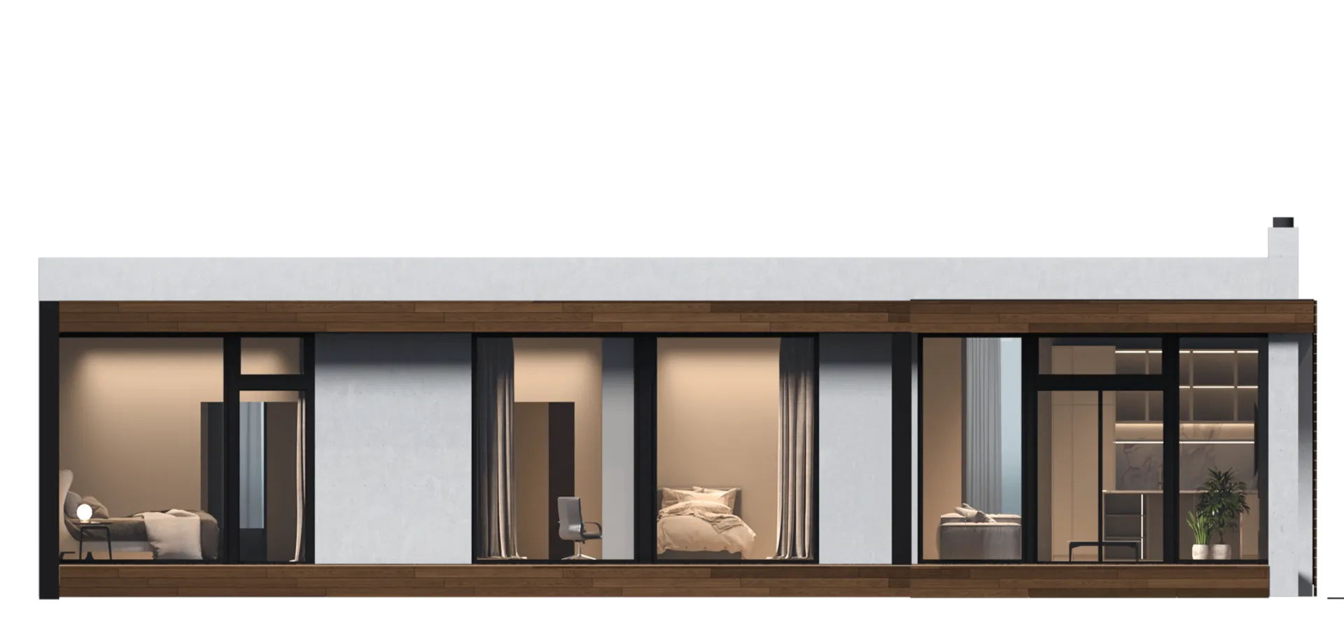 Одноэтажный дом Уно – это настоящее воплощение современного уюта и традиционной немецкой эстетики. Его характерный фахверковый фасад, выполненный из клеёного бруса, создает ощущение близости к природе, а светлые, открытые интерьеры придают дому безмятежную гармонию. Плоская крыша гармонично соединяется с террасой, которую можно использовать как пространство для отдыха, барбекю или летнего сада. Благодаря полной подготовке к круглогодичному проживанию, в доме всегда комфортно – от прохладных зим до жарких летних дней. Отсутствие балконов, лоджий, веранд и прицепных гаражей делает Уно лаконичным и свободным от лишних элементов, а отсутствие чердачного помещения повышает чистоту и простоту внутреннего пространства. Внутри вы обнаружите светлую, воздушную планировку, где каждая комната открыта с широкой стороны, а деревянные балки добавляют тепла и теплоту камину можно поставить прямо в центре гостиной. Деревянный материал внешних стен и открытая крыша создают гармоничное сочетание современного стиля с натуральной роскошью. Дом Уно – это идеальное решение для тех, кто ценит простоту, комфорт и экологичность. Он сочетает в себе традиционную немецкую аккуратность и современный подход к проживанию: простор, тепло, а главное – душевность, которую почувствует каждый, кто переступит порог. Это ваш шанс украсить свои будни уютом и стилем, которые будут радовать вас долгие годы.