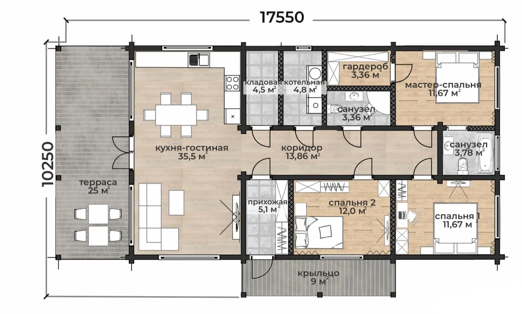 В сердце уютного квартала находится дома­вый шедевр в классическом стиле «Диана» – одноэтажный уютный уголок, где каждая деталь пропитана гармонией традиции и современного комфорта. Снятые с грифовых шпилей и тонко вырезанные детали из клеёного бруса создают ощущение натурального, теплого дома, который вписывается в любое природное окружение. Его двускатная крыша, пропитанная ветрами и дождями, обеспечивает надёжную защиту и добавляет архитектуре изящества и элегантности. Постройка ориентирована на круглогодичную жизнь: крепкие стеклянные окна пропускают свет даже в прохладные утренние часы, а просторный центральный холл плавно переходит в удобные комнаты, где каждая зона – это отдельная история комфорта. Отсутствие балконов и веранд не мешает почувствовать связь с природой – открытый вид на внутренний двор и зеленый ландшафт создают свой собственный оазис уюта. Отсутствие пристроенного гаража не затрудняет, а наоборот, подчеркивает чистоту линии архитектуры и простоту городской жизни без лишних «пушек». «Диана» – это дом, где традиционная классика встречается с требованиями современного образа жизни. Её неповторимый стиль, качественная кладка из клеёного бруса, надёжная двускатная крыша и продуманный внутренний план делают этот объект идеальным выбором для тех, кто ценит эстетику, комфорт и долговечность. Дайте себе возможность открыть дверь в уют, где каждое утро обещает тепло, а каждый вечер – спокойствие.