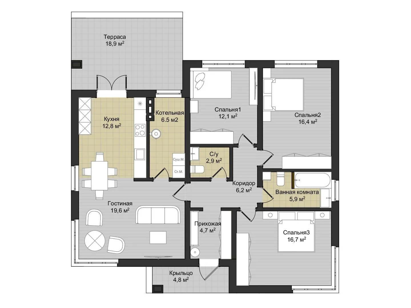 Одноэтажный дом в классическом стиле Геката
