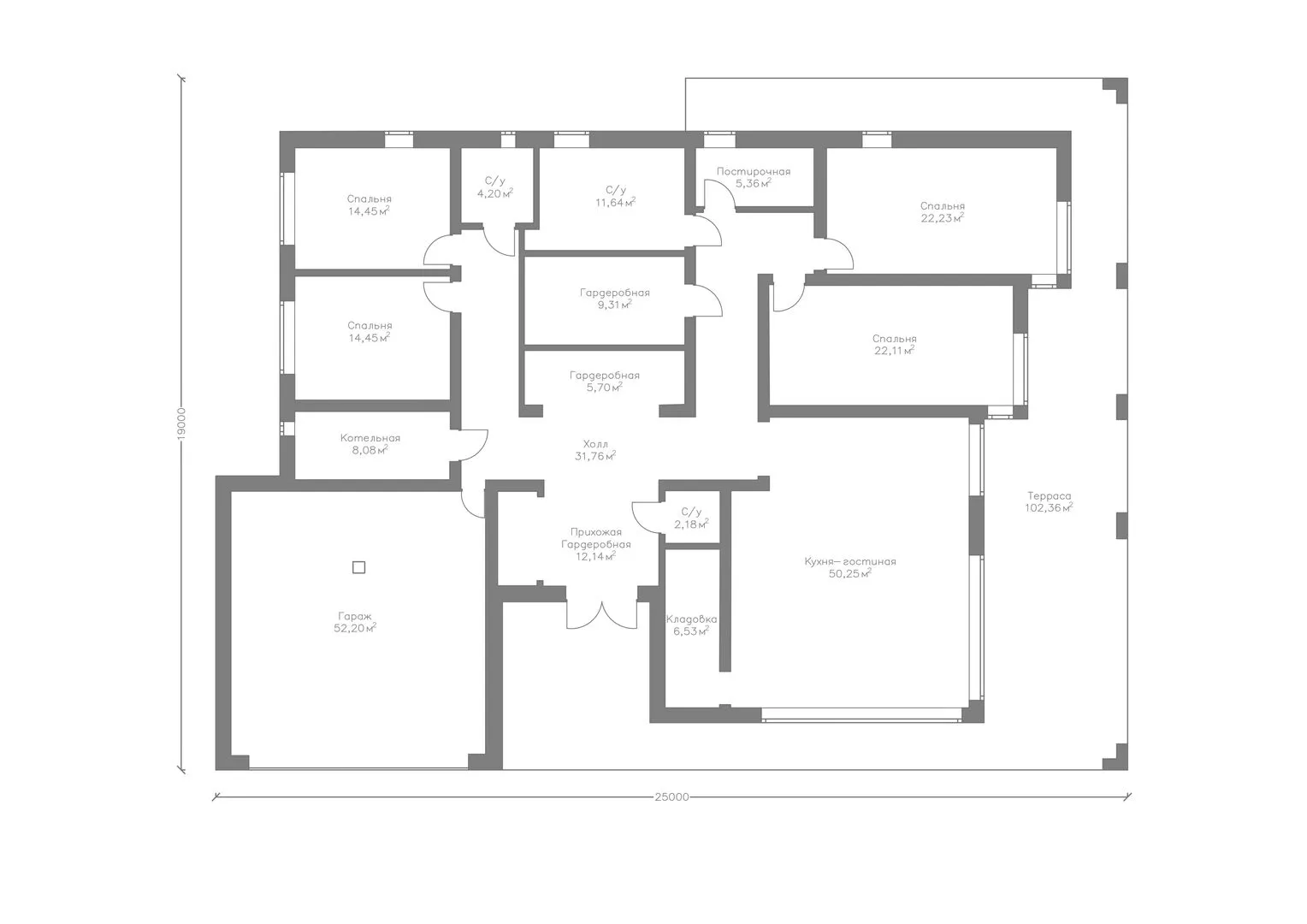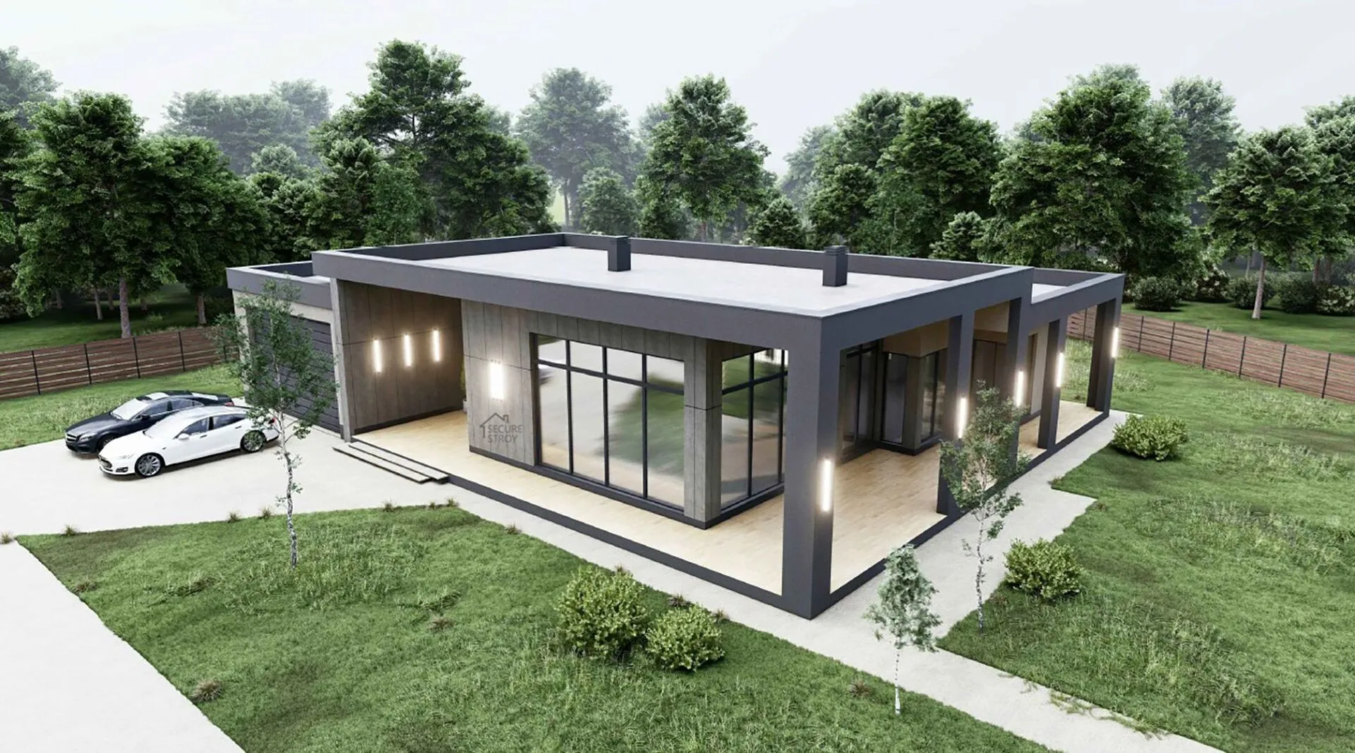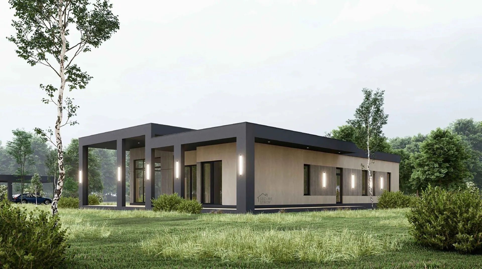 Одноэтажный дом в современном стиле с гаражом на 2 авто SS-303