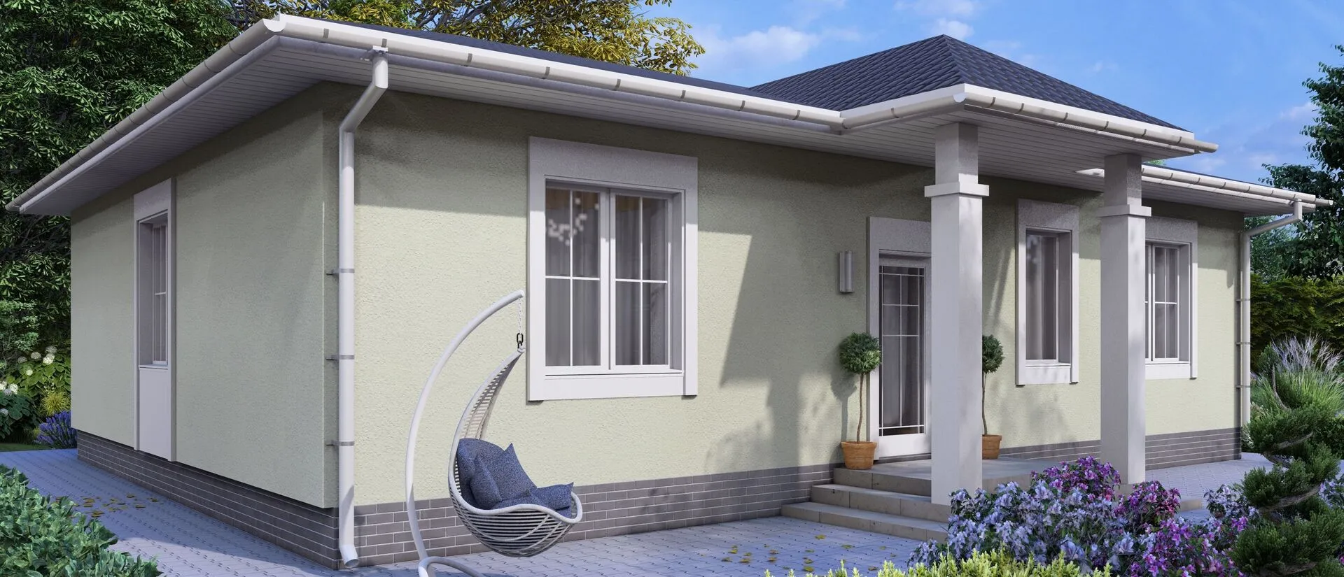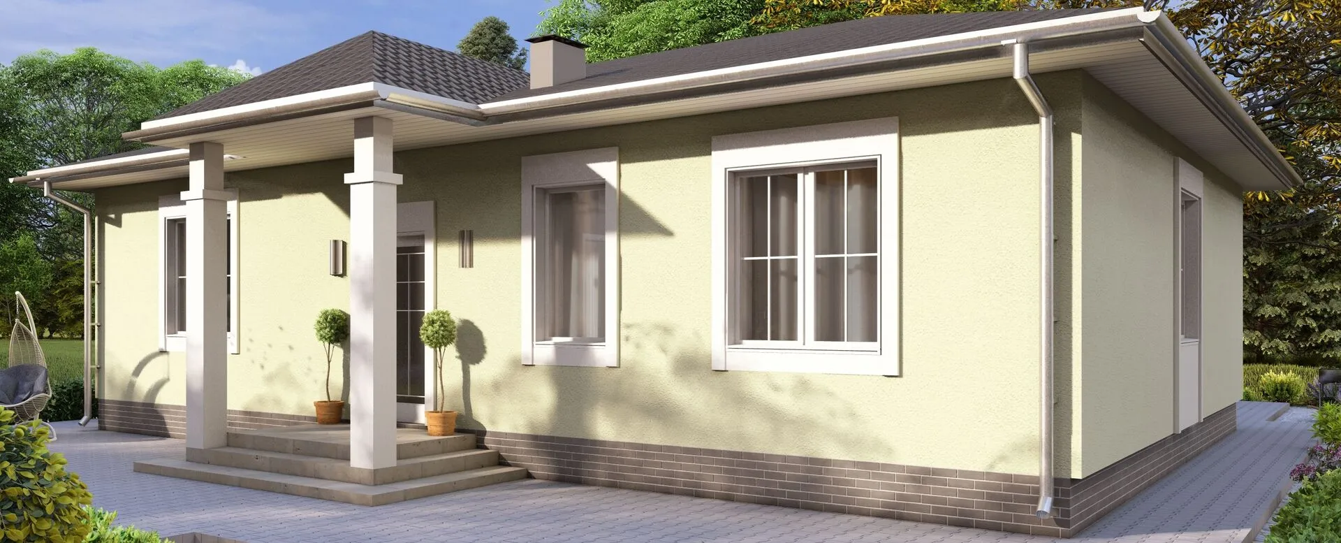 Одноэтажный дом с крыльцом и терассой БРАИТ-5