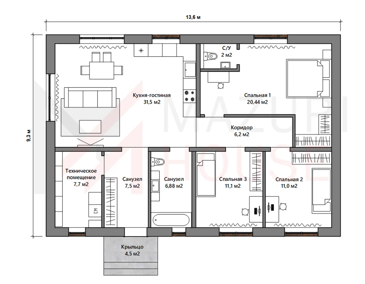Одноэтажный дом «Ясный-104»