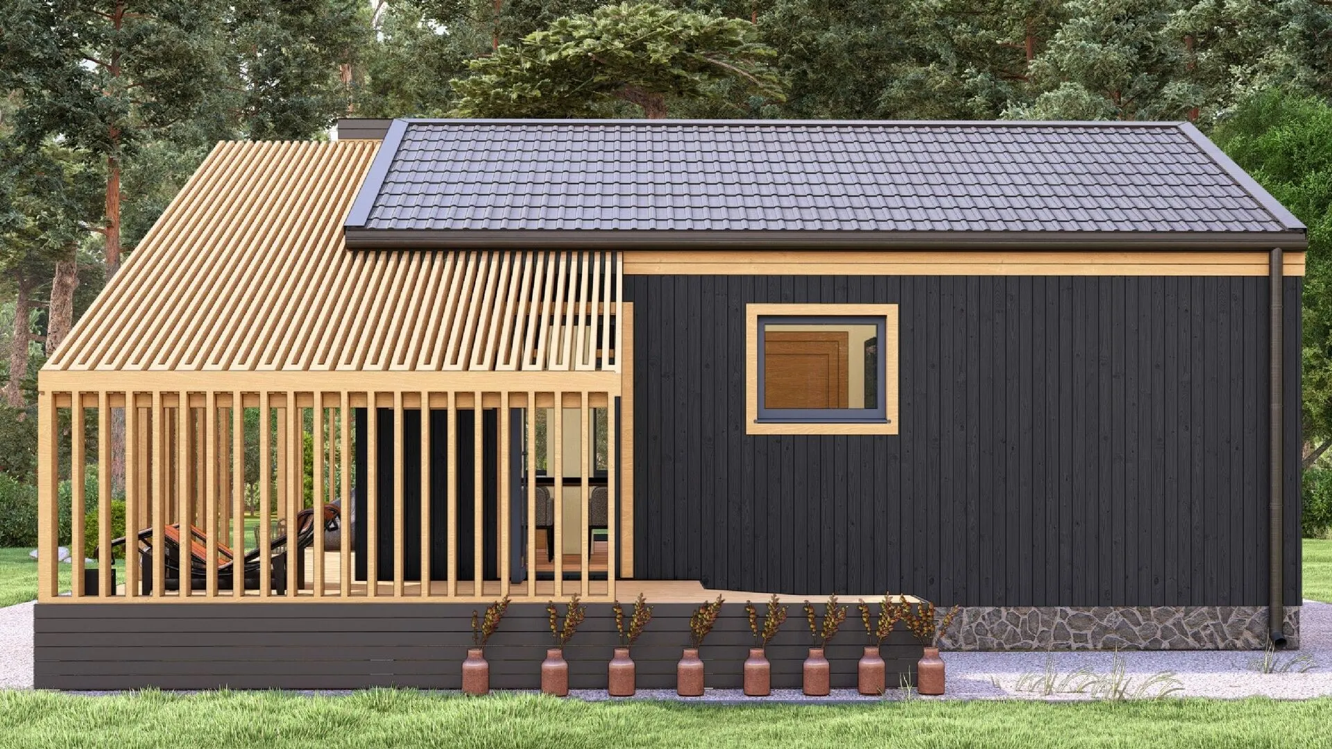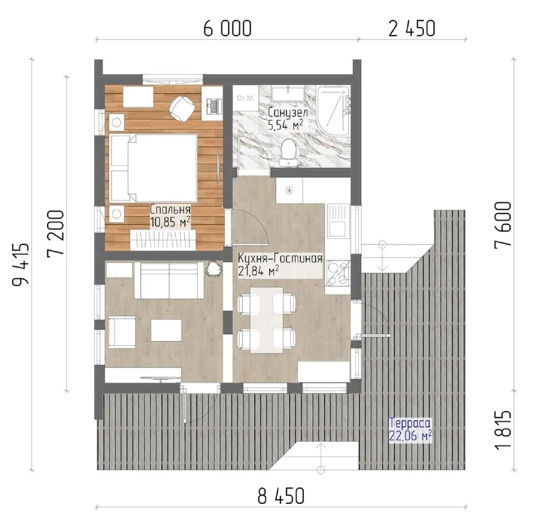 Пусть ваша мечта о доме станет реальностью уже сегодня. Одноэтажный каркасный дом **Астра‑2** – это настоящее сочетание простоты и уюта, достойное любого дома, где хочется жить круглогодично. Он создан в стиле **барнхаус**, где деревянный каркас и открытая, воздушная планировка создают ощущение тепла и гостеприимства, а ровные линии двускатной крыши придают ему характерный, слегка сельский шарм. Внутри дома вы найдете простор и свет, где каждый уголок обволакивается природным теплом благодаря изоляции деревянных стен. На балконе или в лоджии нет, но обширная **терраса** превратит ваш задний двор в тихий уголок для вечеров и летних барбекю. Просторность первого этажа позволяет свободно разместить зону отдыха, кухню и домашний офис без потери уюта. Если вам важна автономность, то отсутствие прицепного гаража и крытой автостоянки поможет сохранить чистоту внешней части дома и окружающей среды. А отсутствие чердачного помещения говорит о прямом доступе к каждой комнате, что делает дом особенно практичным. Откройте для себя комфорт, эстетичность и надежность – закажите свой новый уютный дом **Астра‑2** уже сегодня, и пусть каждый день будет наполнен теплом и радостью.