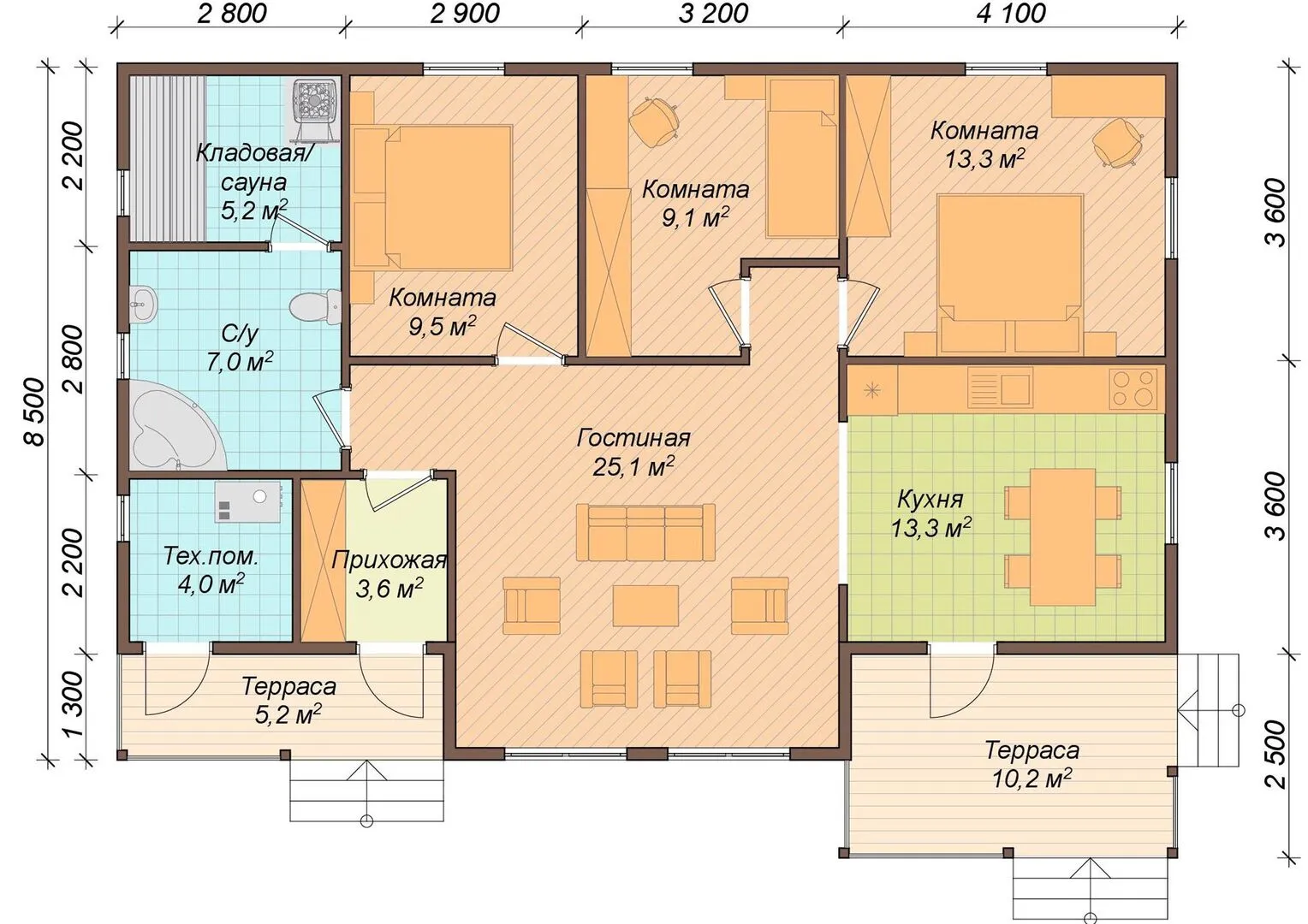 Одноэтажный каркасный дом Альма