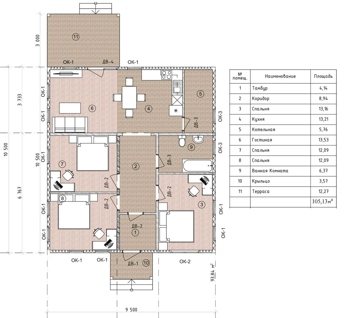 Площадь дома 105 м2