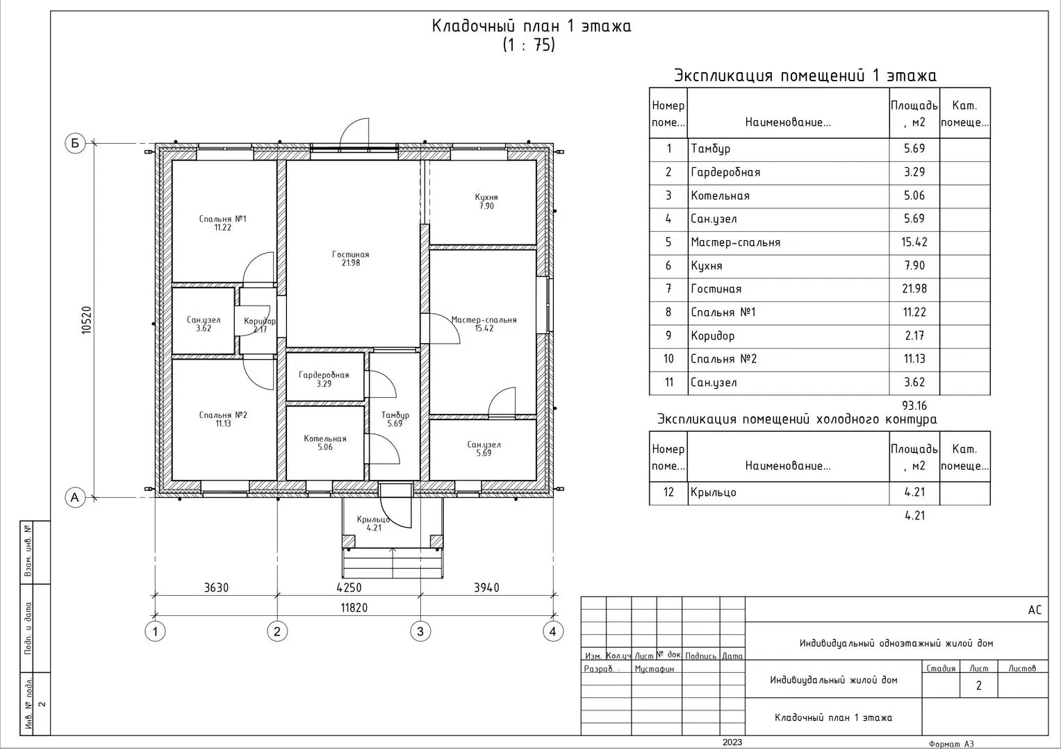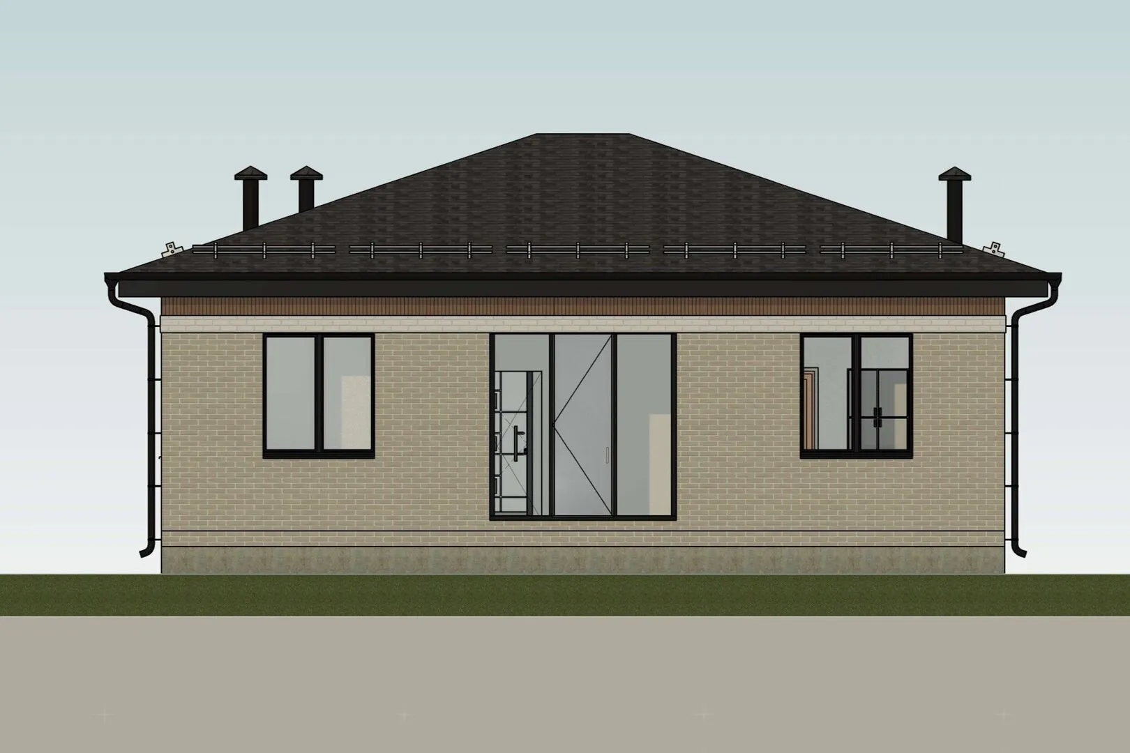 Одноэтажный каркасный дом 12х10м