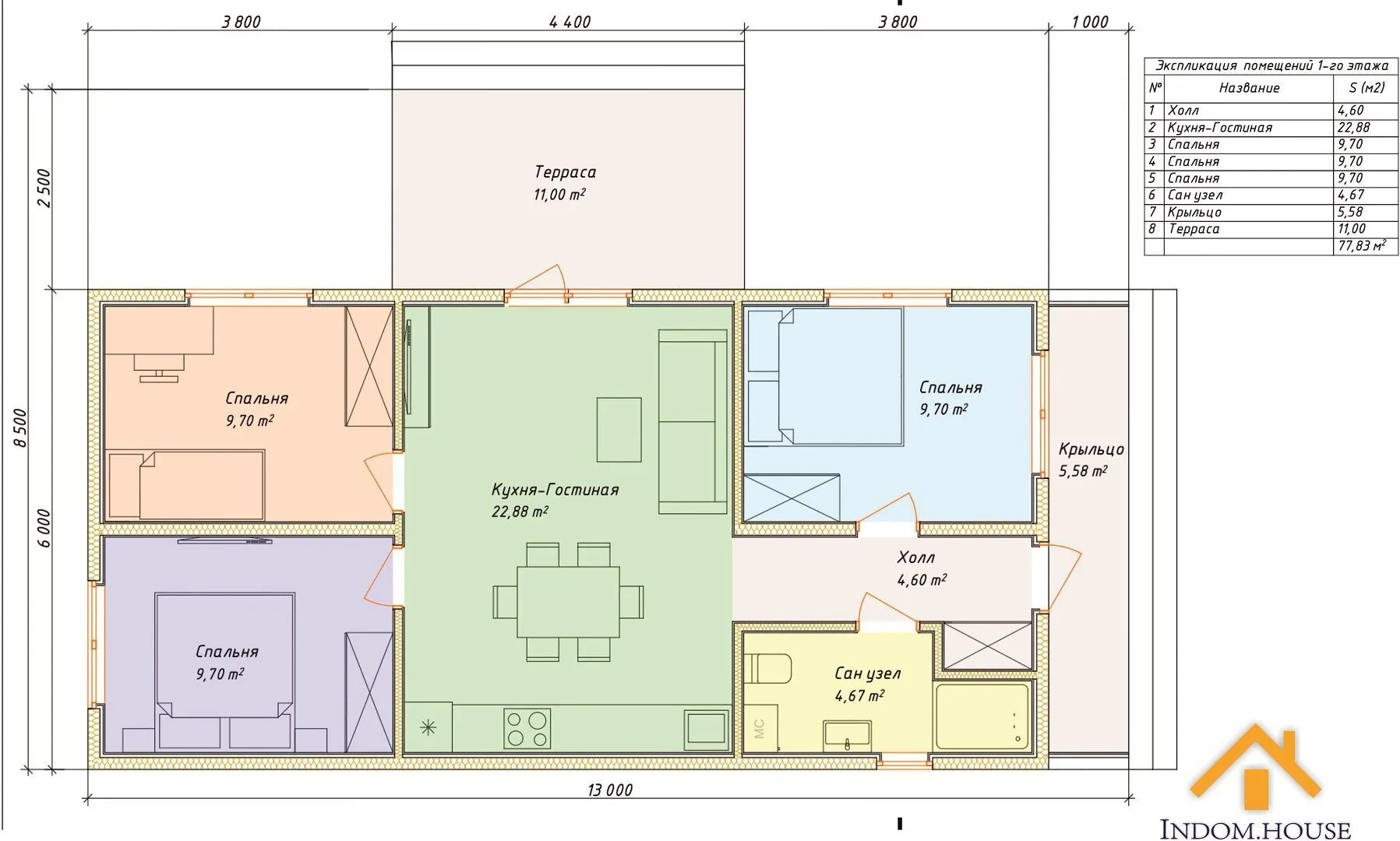 Заказать конусльтацию по:Одноэтажный каркасный дом i.House77