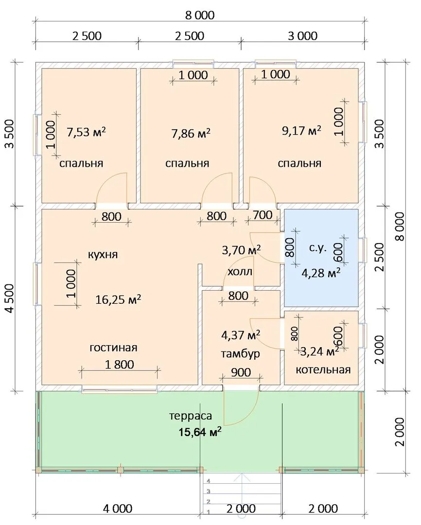 Одноэтажный каркасный дом 8,0х10,0м К-26
