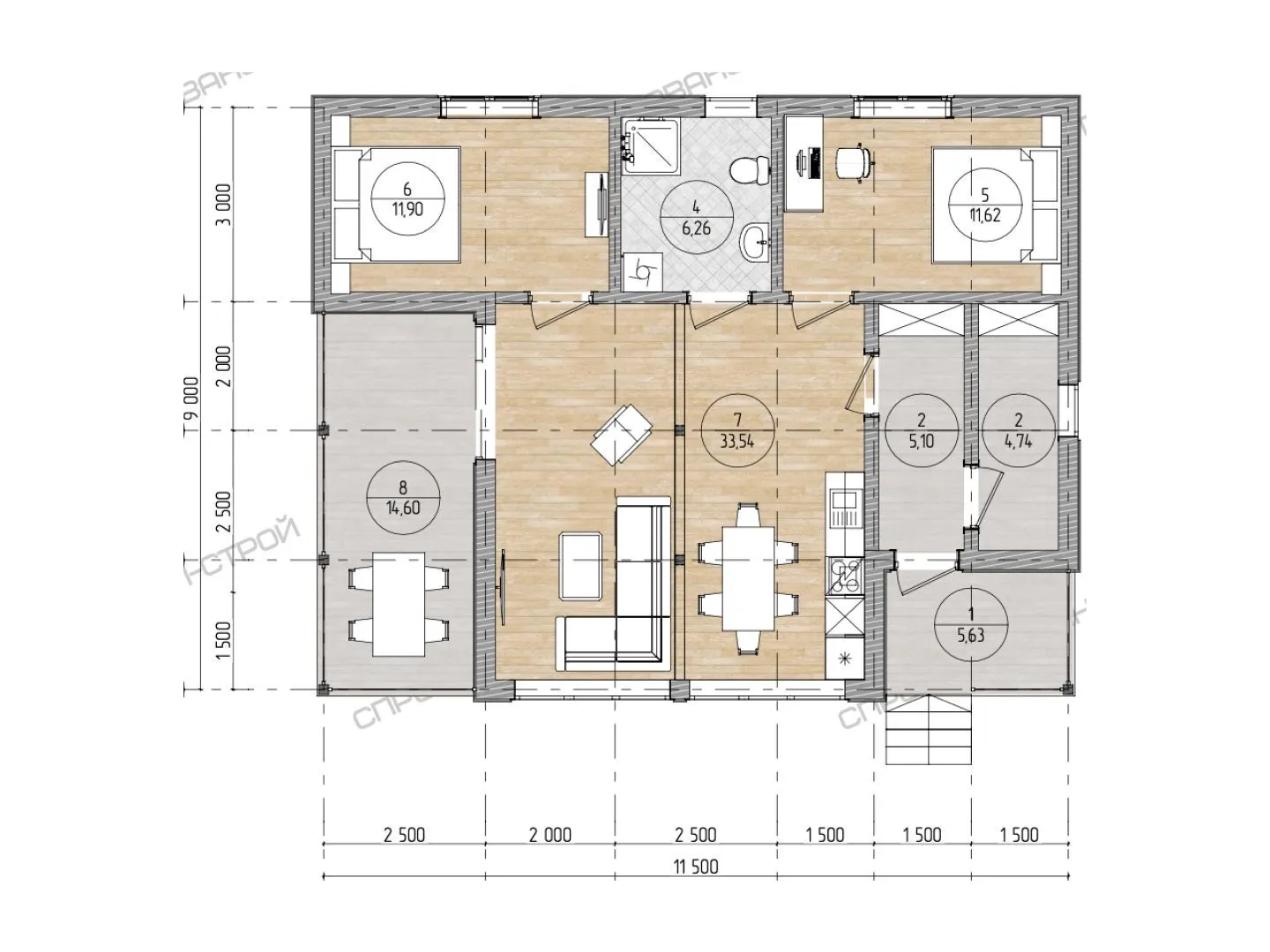Заказать конусльтацию по:Одноэтажный каркасный дом «Белла-Вита»