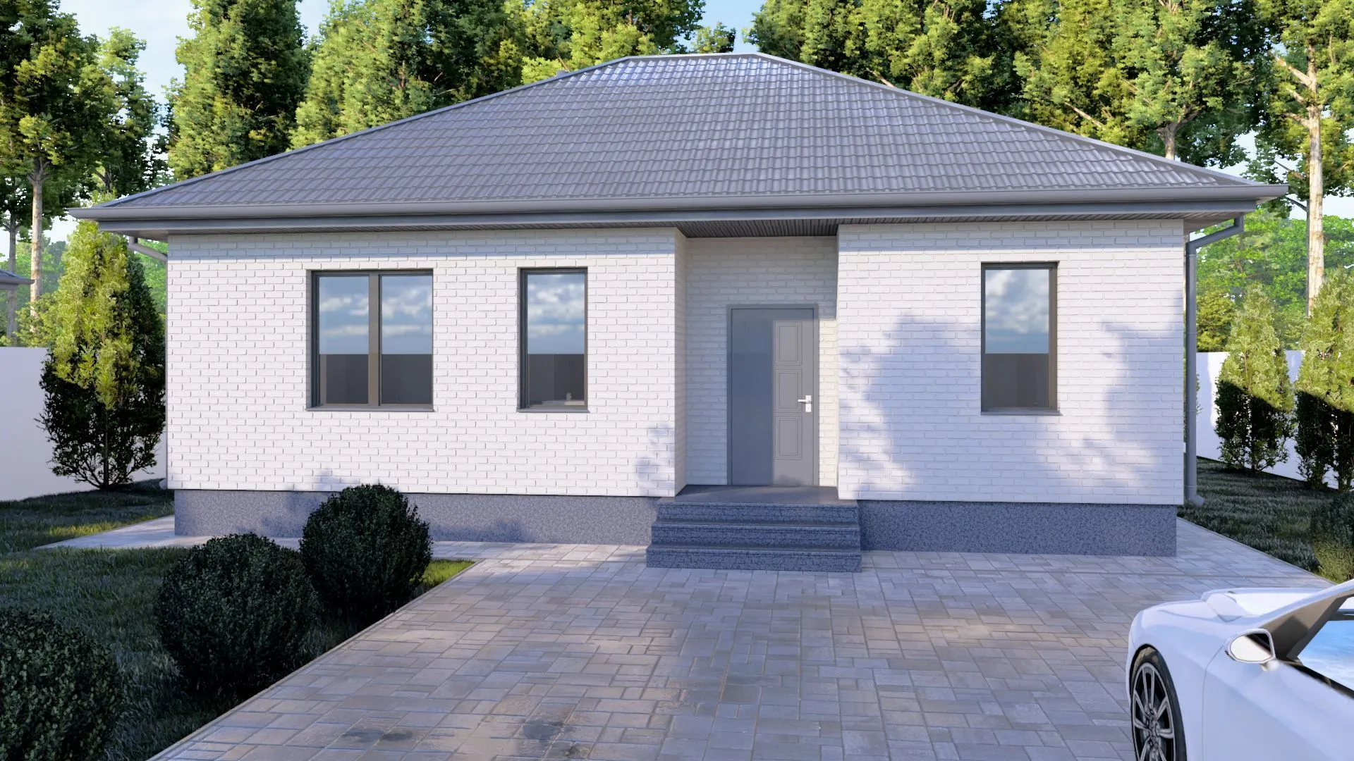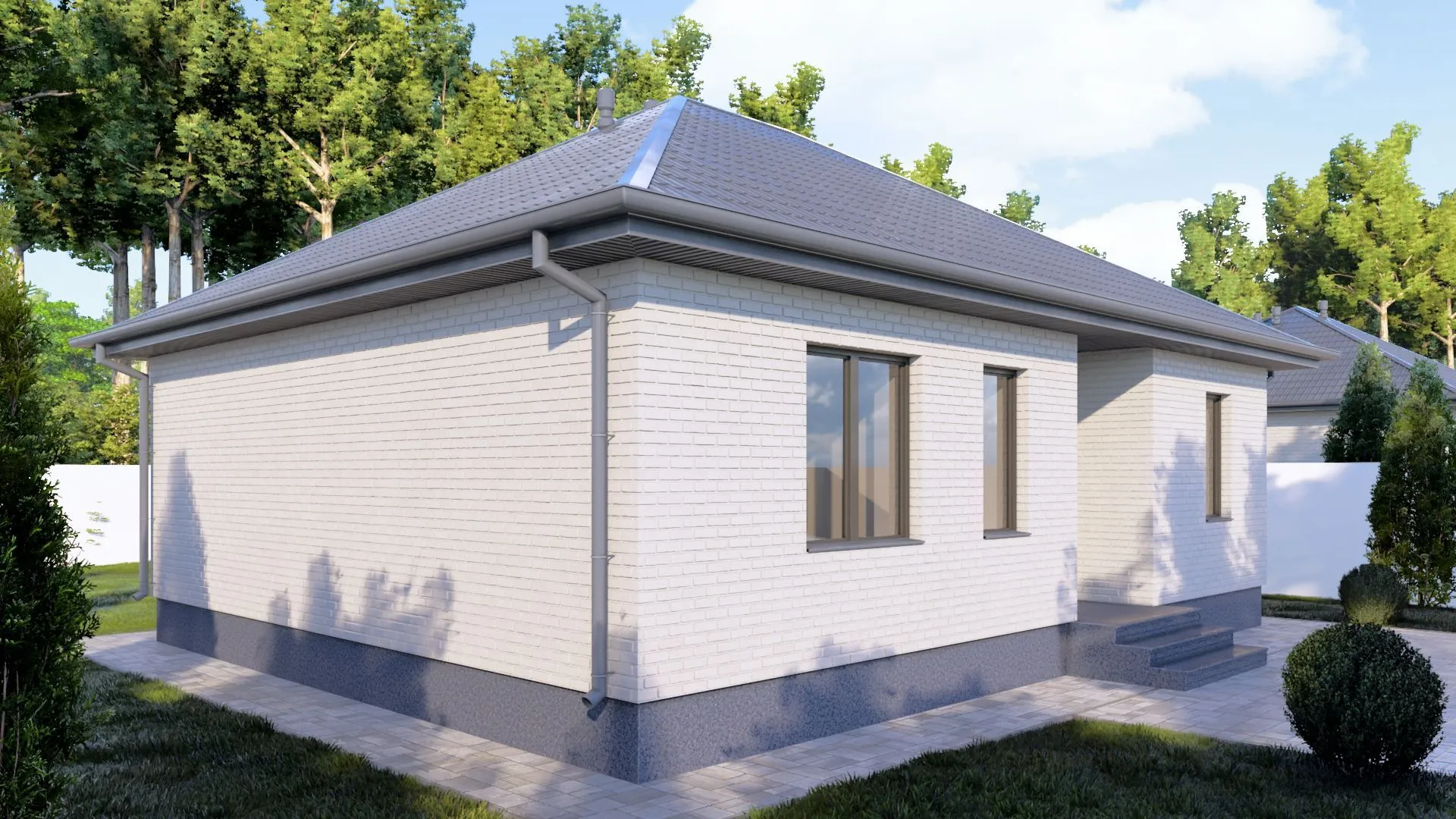 Одноэтажный кирпичный дом STANDART — 99 m2 (Белый облицовочный кирпич)
