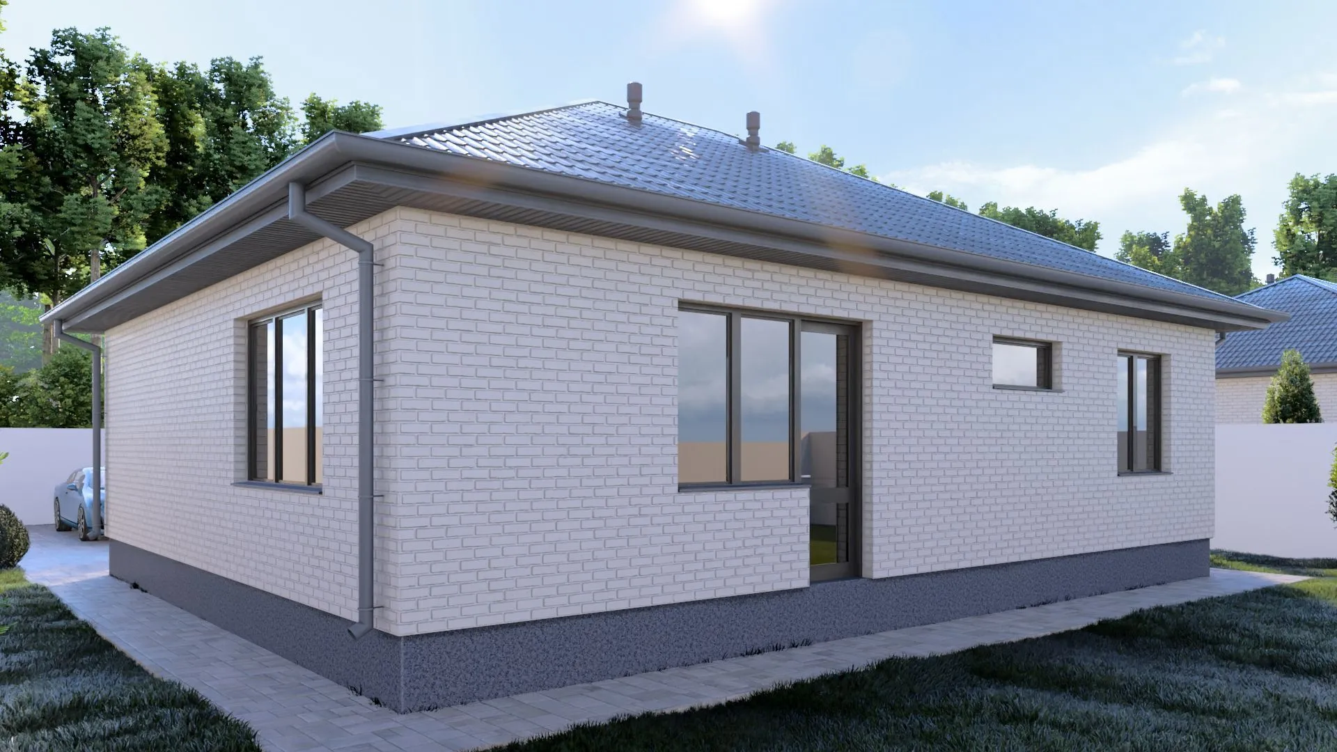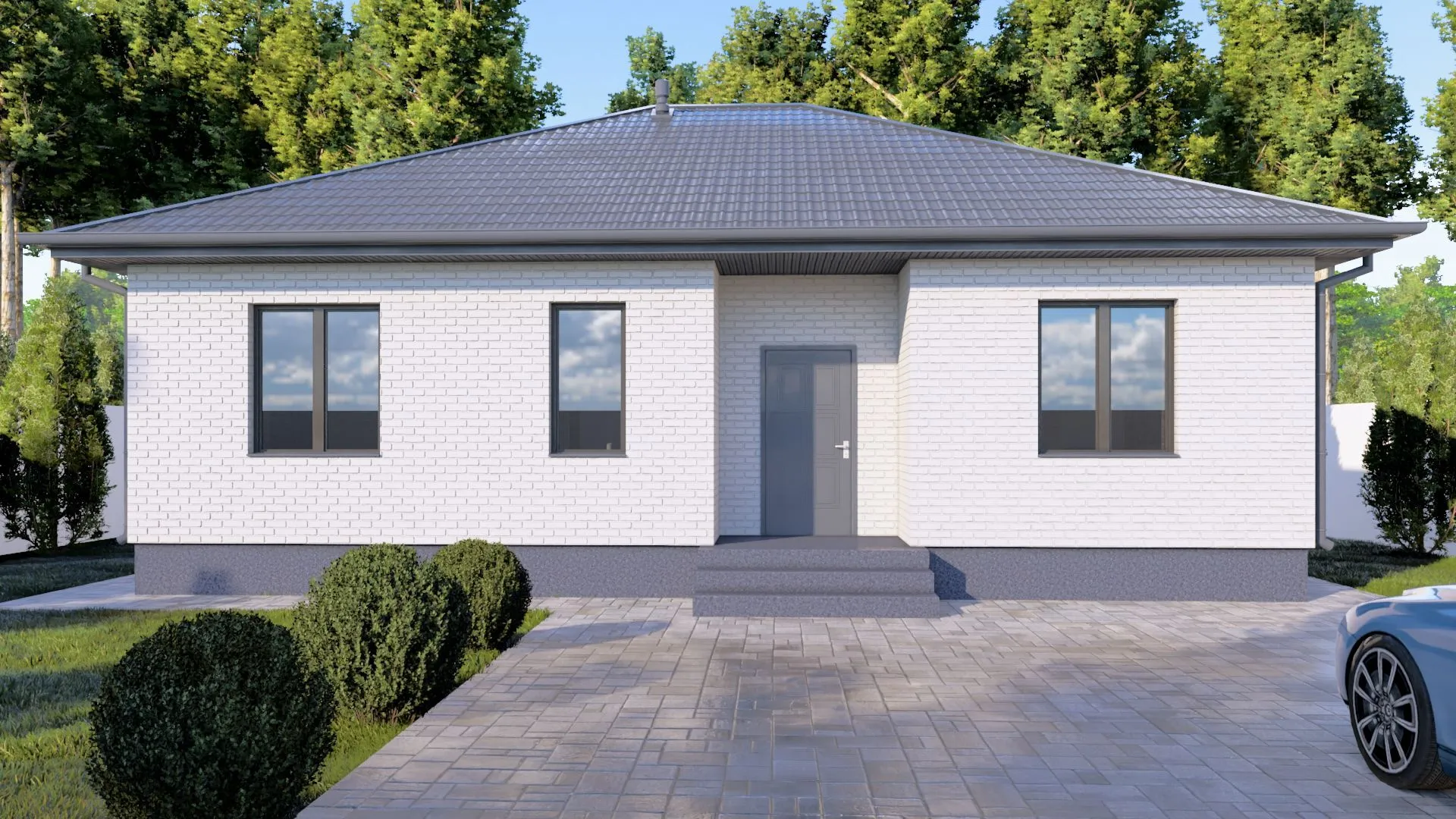 Одноэтажный кирпичный дом COMFORT — 118 m2 (Белый облицовочный кирпич)