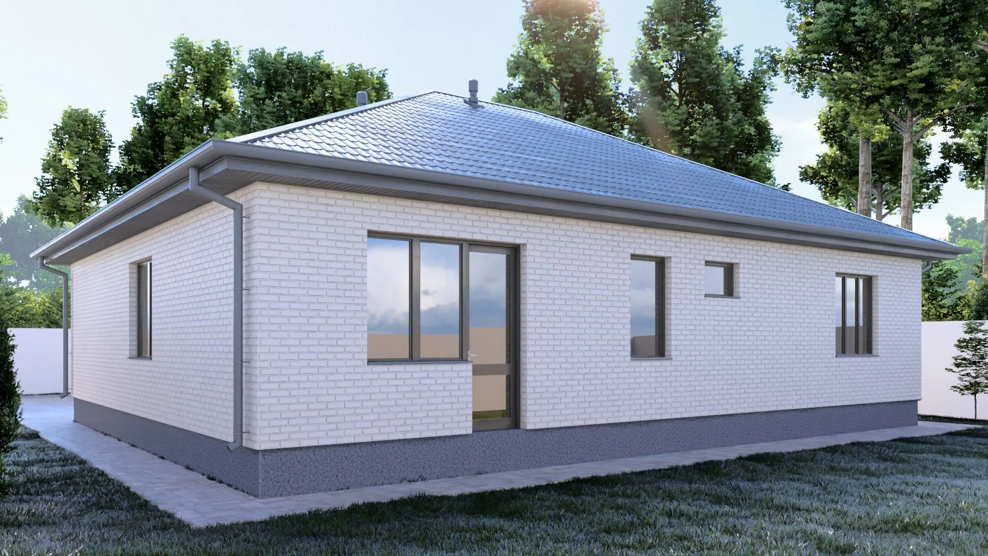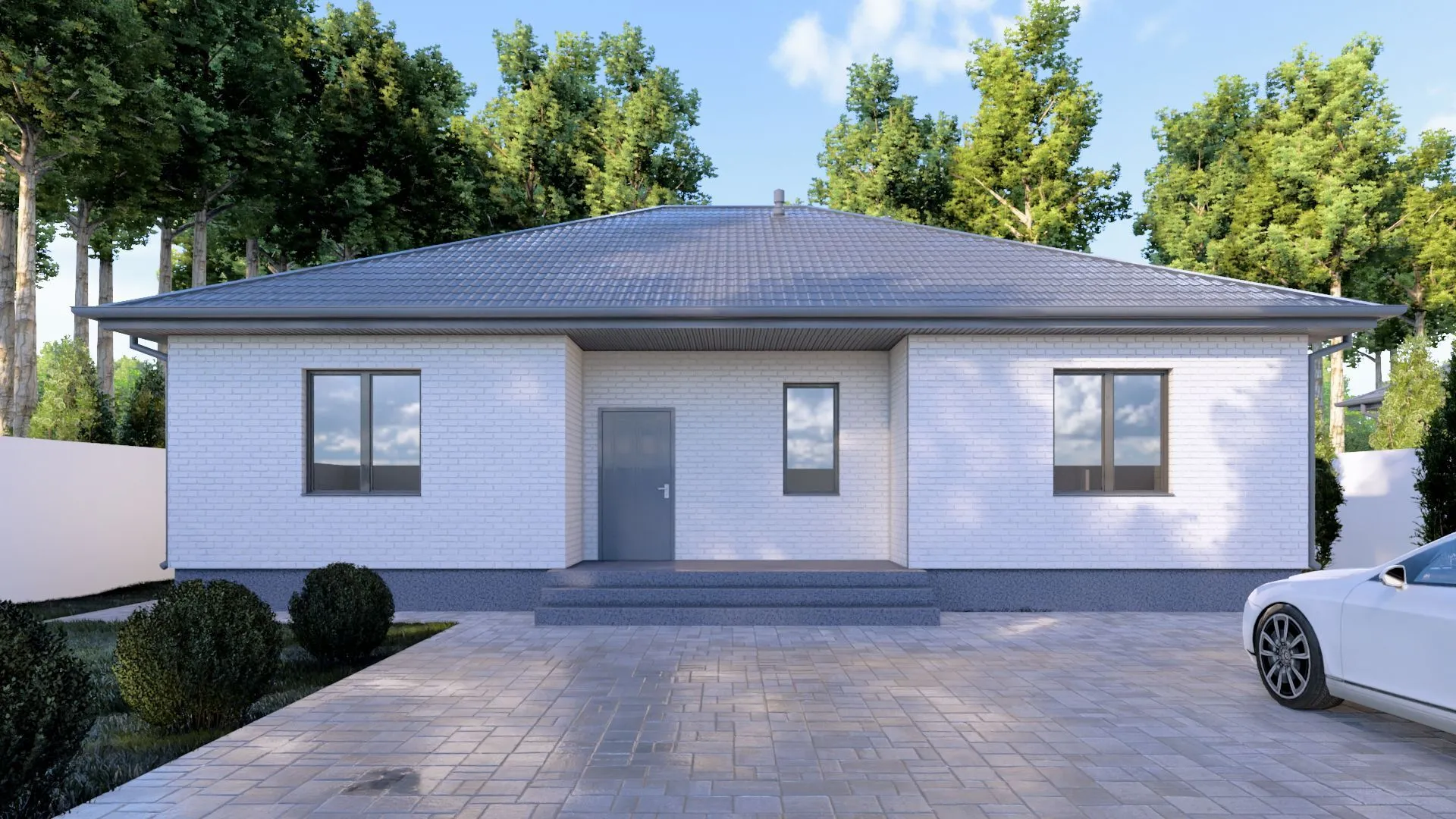 Одноэтажный кирпичный дом PREMIUM — 158 m2 Белый облицовочный кирпич