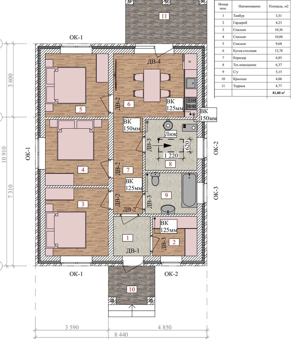 Заказать конусльтацию по:Одноэтажный кирпичный дом ТП-87