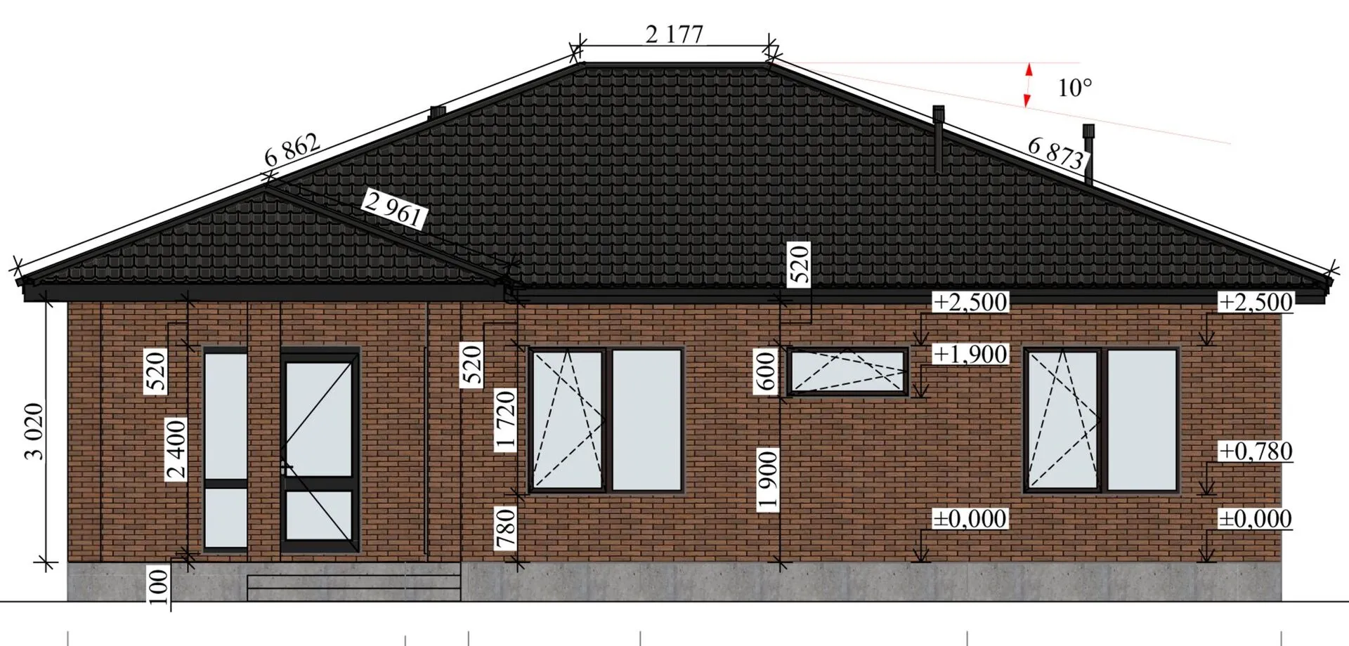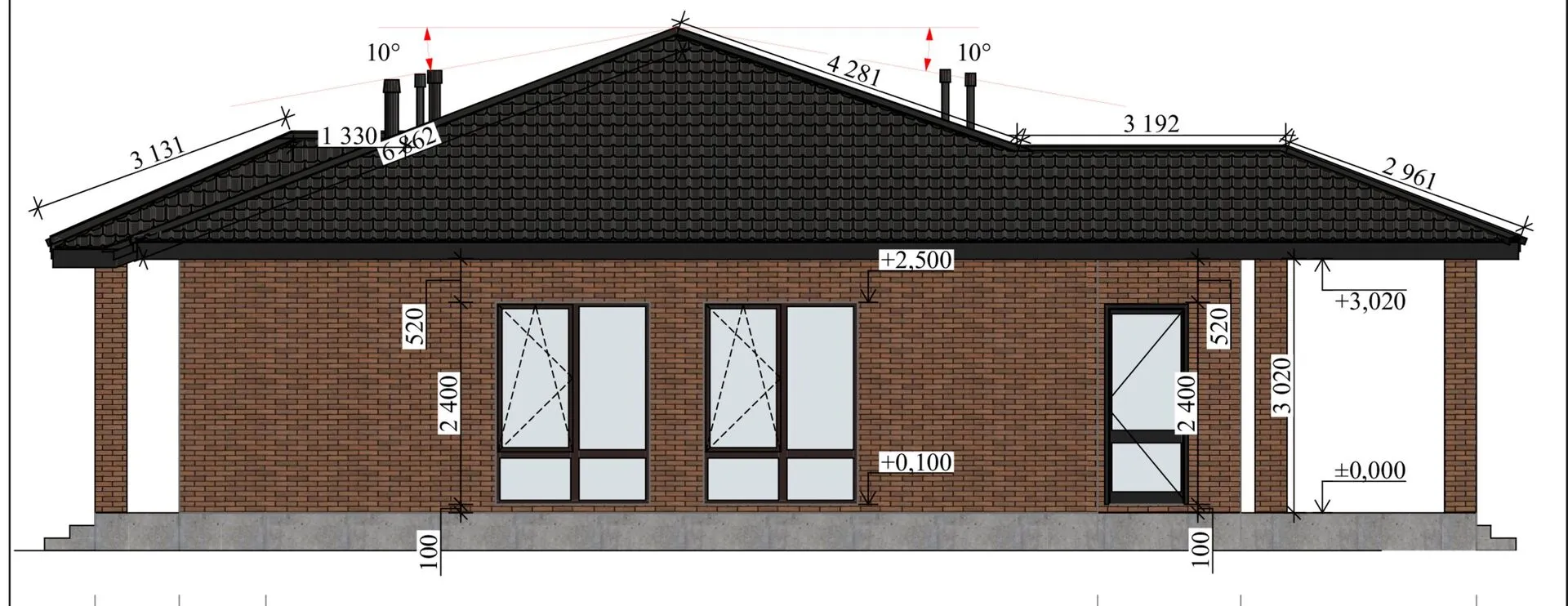 Заказать конусльтацию по:Одноэтажный кирпичный дом ИП-165