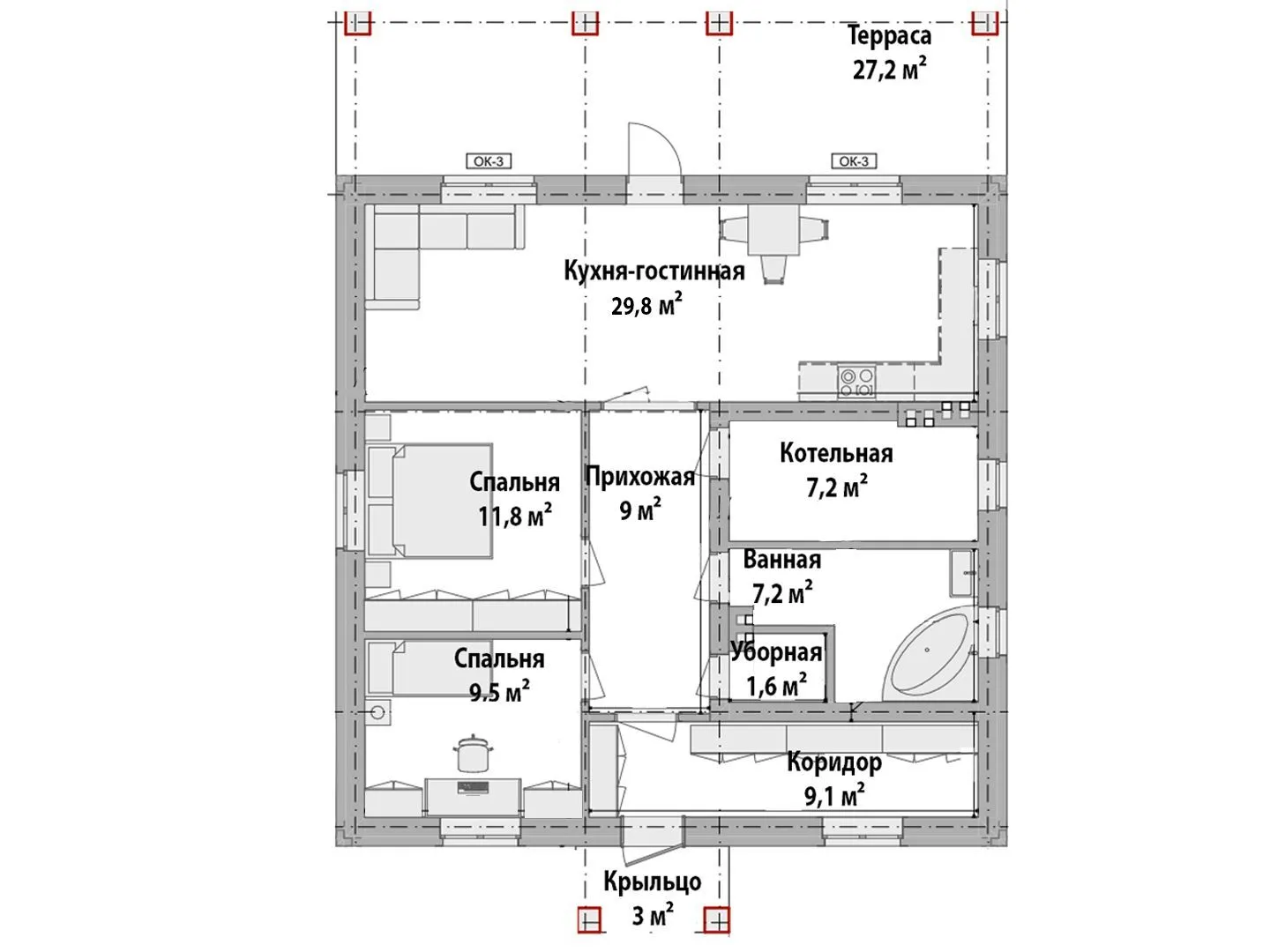Одноэтажный кирпичный дом ОН-85