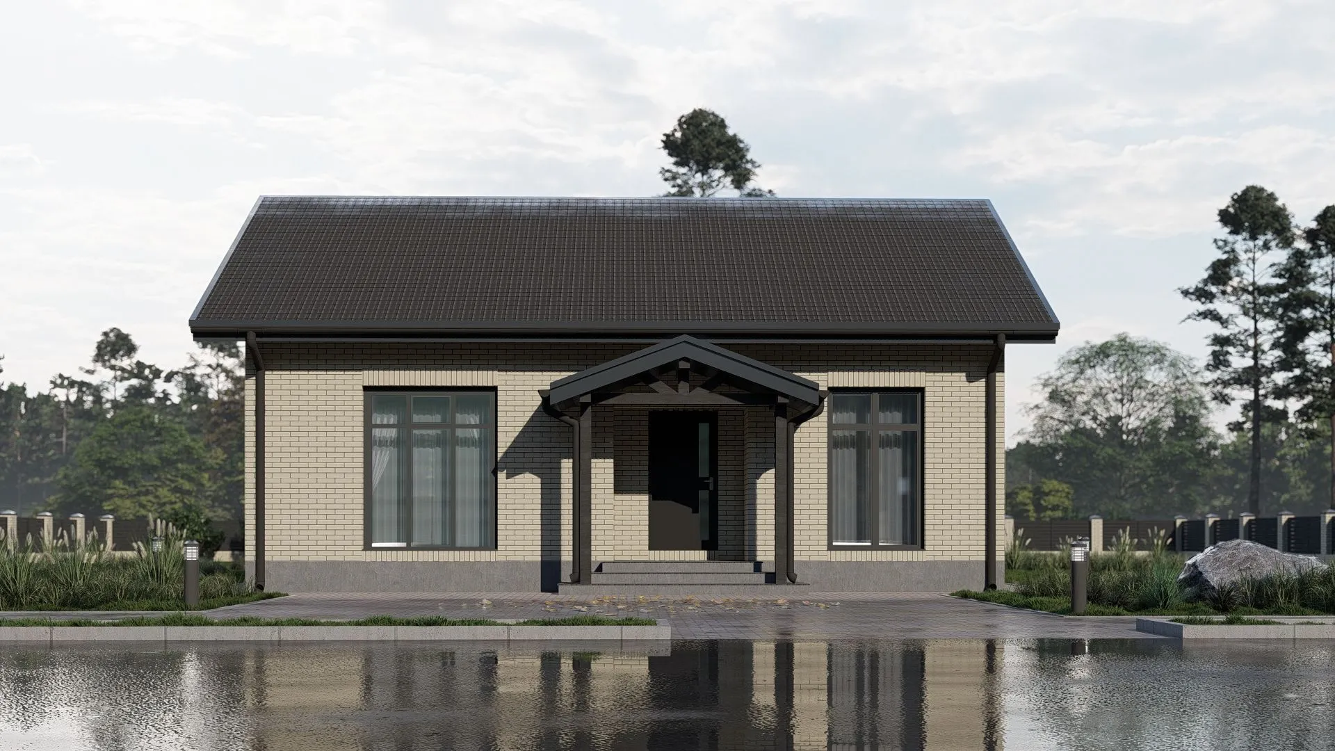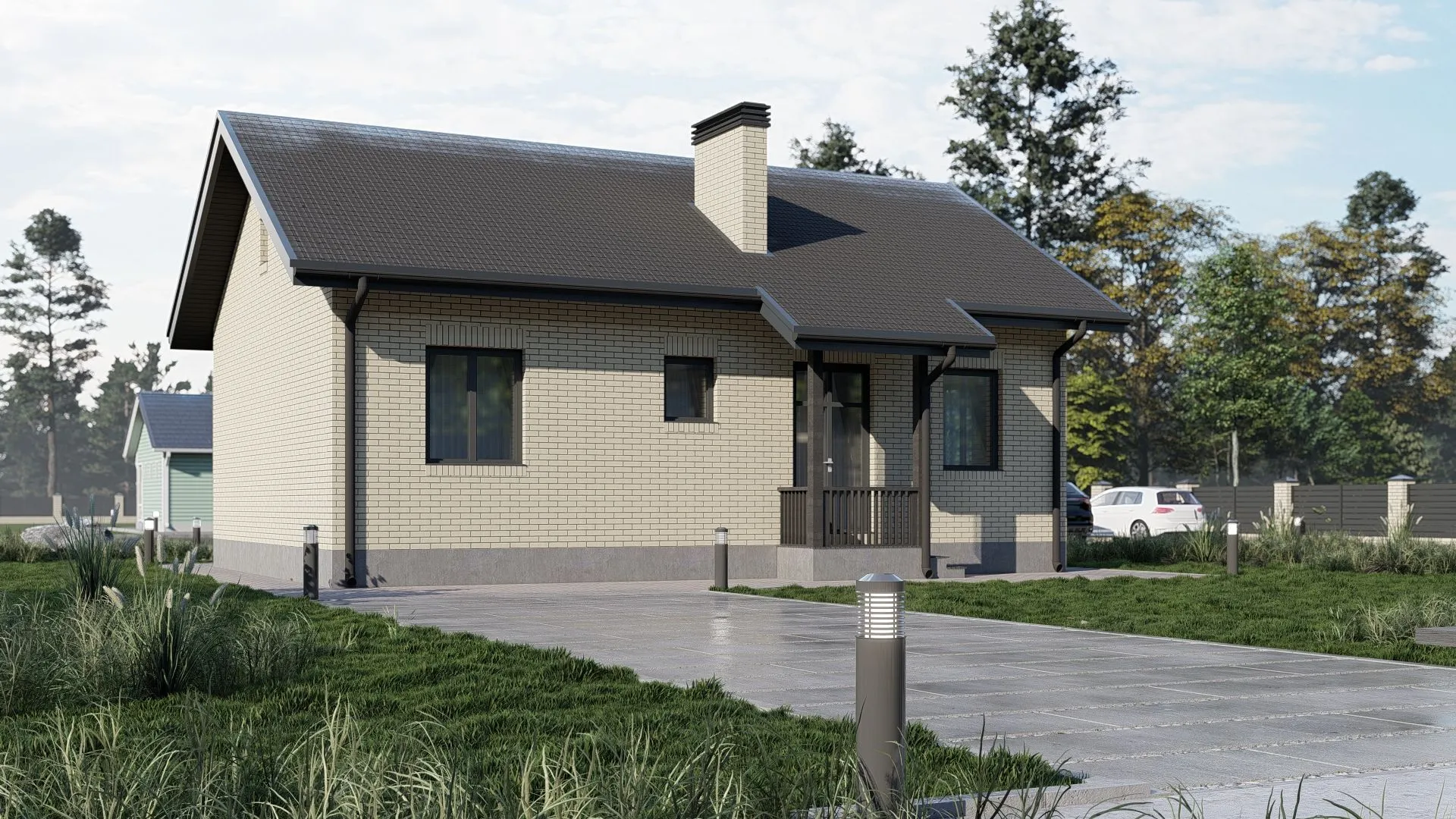 Одинэтажный кирпичный дом площадью 63 м² воплощает в себе гармонию простоты и уюта, характерную для архитектурного стиля минимализм. Его строгие линии, гладкие кирпичные стены и двускатная крыша создают атмосферу спокойствия, в которой каждый элемент выстроен с умом и без лишних деталей. Внутренний план продуман до мелочей — два светлых спальни, открытая гостиная и уютная кухня делают этот дом идеальным для круглогодичного проживания, где тепло от каминного очага и солнечный свет создают непрерывный круговорот уюта и энергии. Наслаждайтесь просторным чердачным помещением, превращенным в комфортное рабочее место или дополнительную зону отдыха, и ощущайте легкость воздуха, проникающего через большие окна. Завесы и полки сконструированы так, чтобы максимально использовать пространство без громоздких элементов. Отсутствие веранд, балконов и прицепного гаража делает этот дом настоящим островком уединения, где вы сможете полностью погрузиться в свои мысли и творчество, не отвлекаясь на лишние заботы. Этот дом — приглашение к жизни, где каждая деталь служит радости, а простота становится вашим главным союзником.