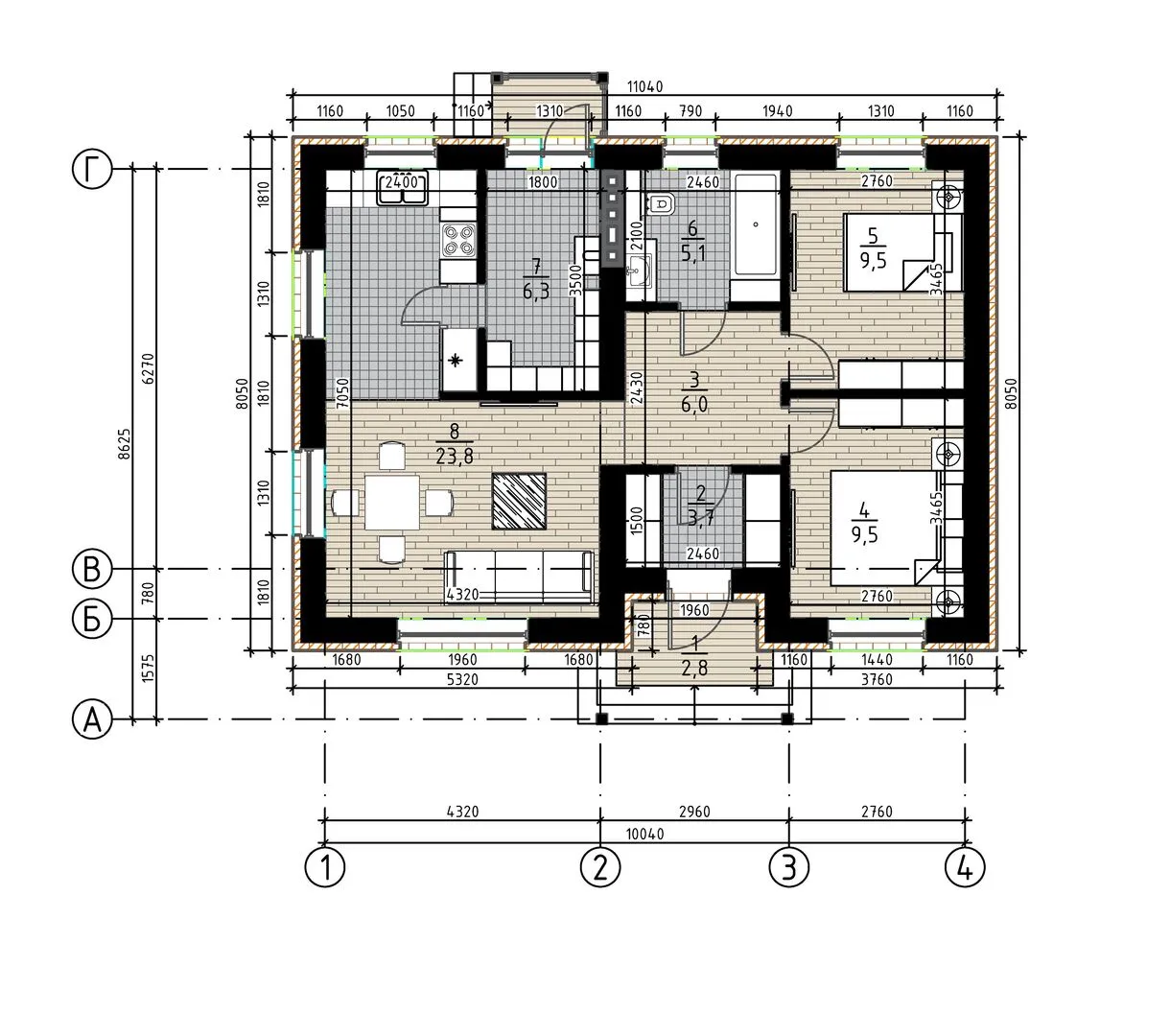 Площадь дома 63 м2