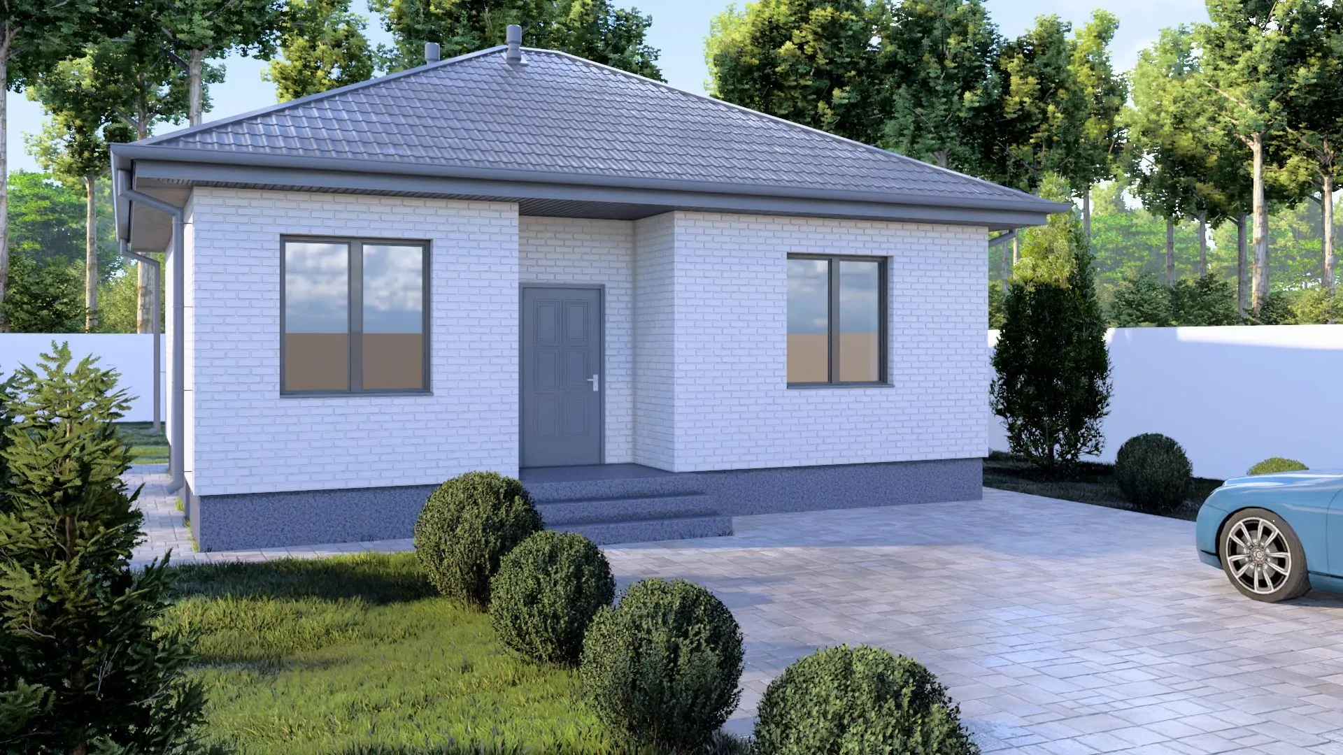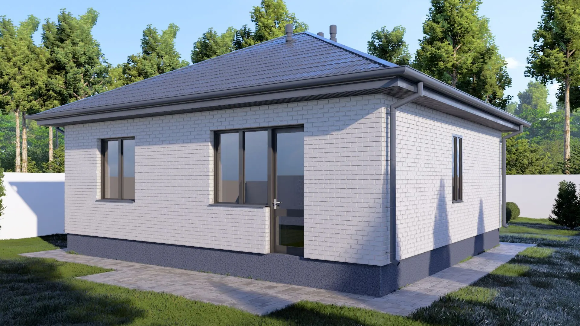 Одноэтажный кирпичный дом LITTLE — 78 m2 (Белый облицовочный кирпич)