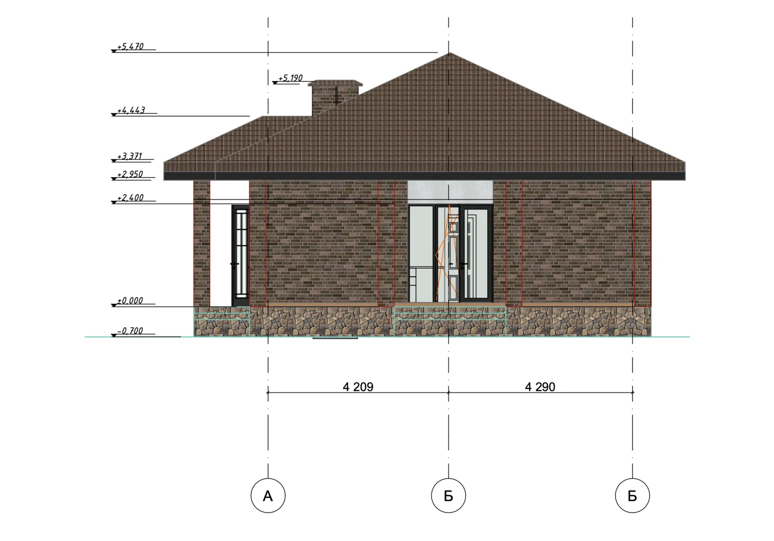 Заказать конусльтацию по:Одноэтажный кирпичный дом LEDA 2.0 (Леда 2.0)