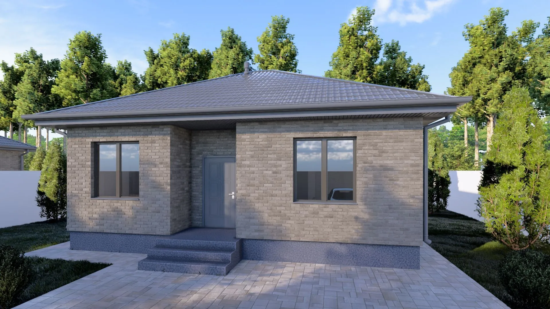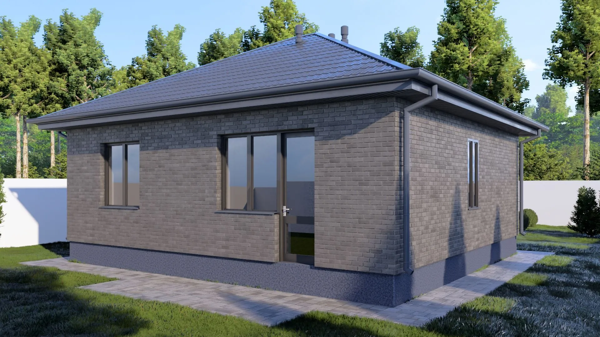 Одноэтажный кирпичный дом LITTLE — 78 m2 (Серый облицовочный кирпич)