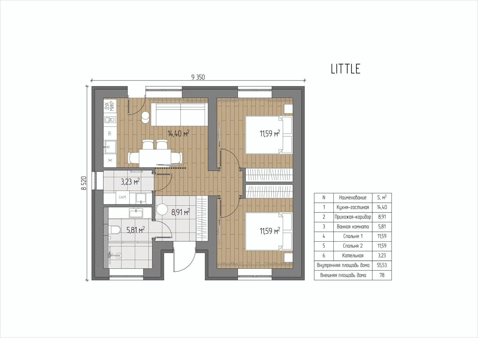Площадь дома 55 м2