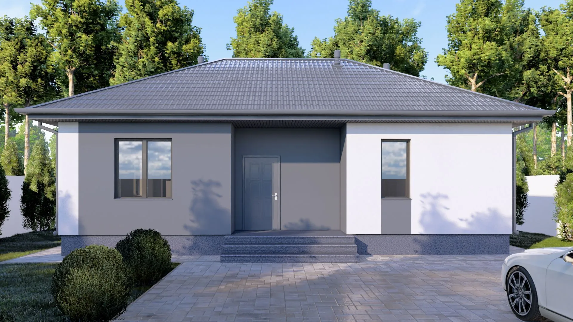Одноэтажный кирпичный дом MIDDLE — 87 m2 (Декоративная штукатурка)