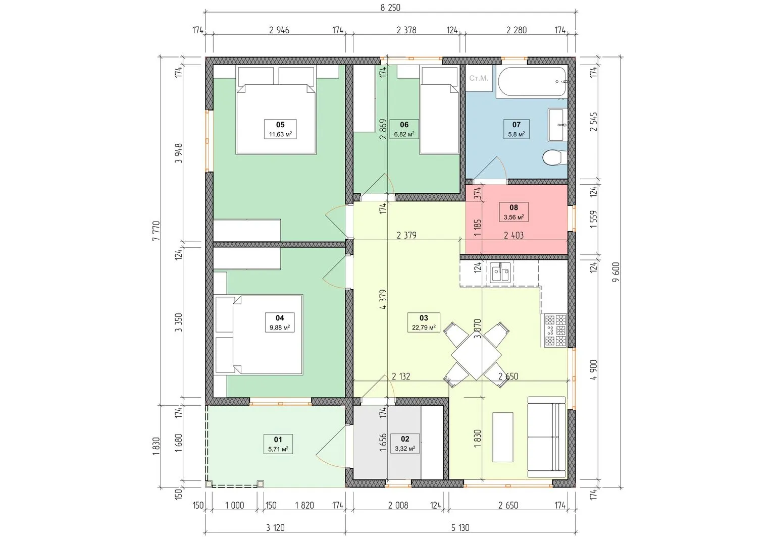 77 м2