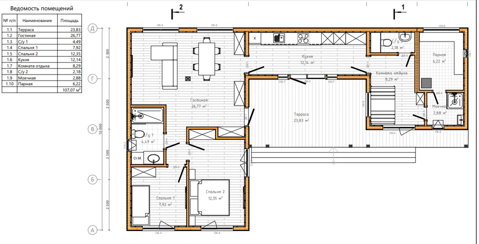 Площадь дома 107 м2