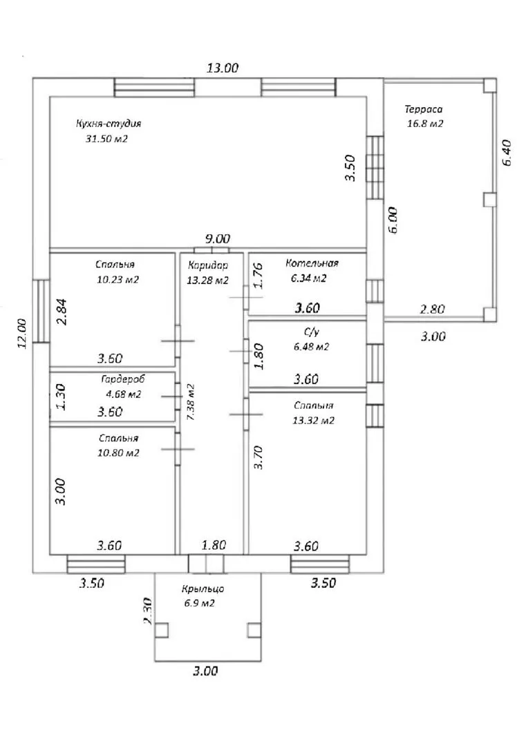 Одноэтажный с 3 спальнями и террасой АРМАС-6