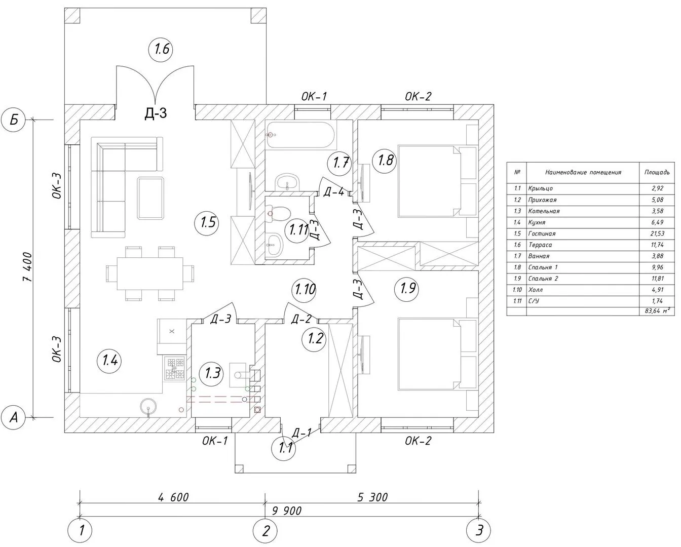 Одноэтажный дом из клееного бруса с удобной планировкой КБ94
