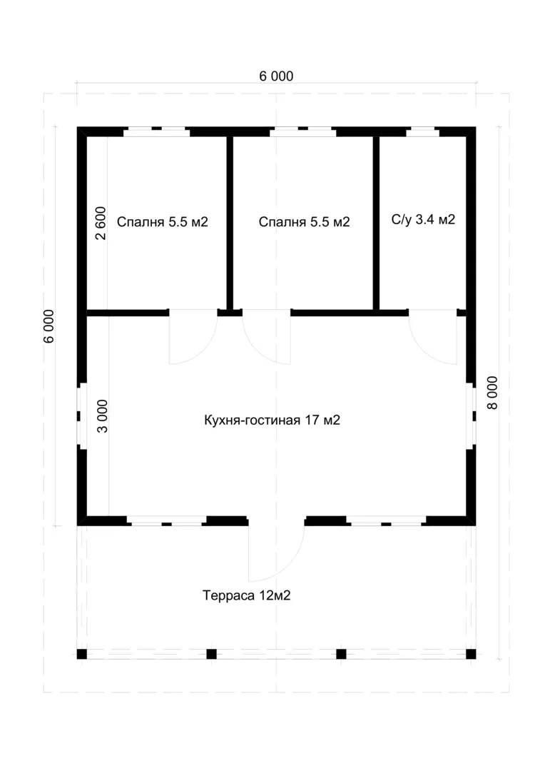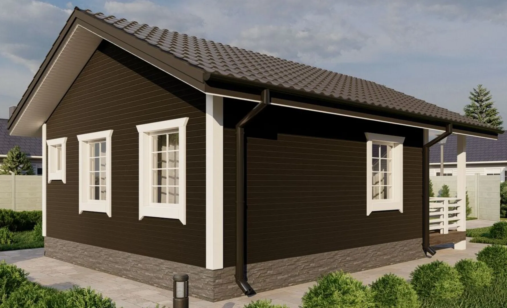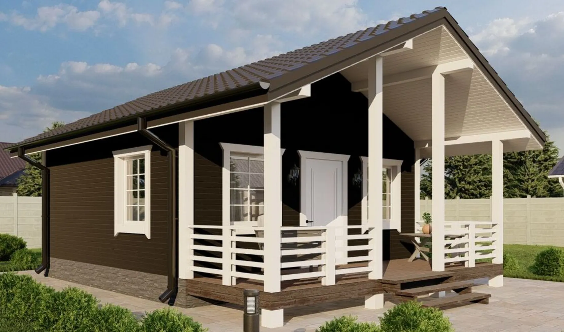 Одноэтажный жилой дом 6х6 с террасой