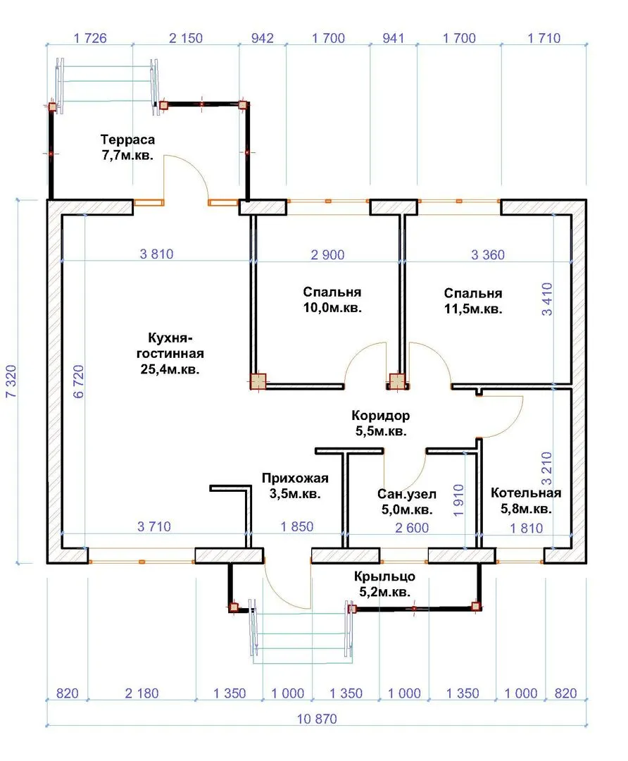 Площадь дома 74 м2