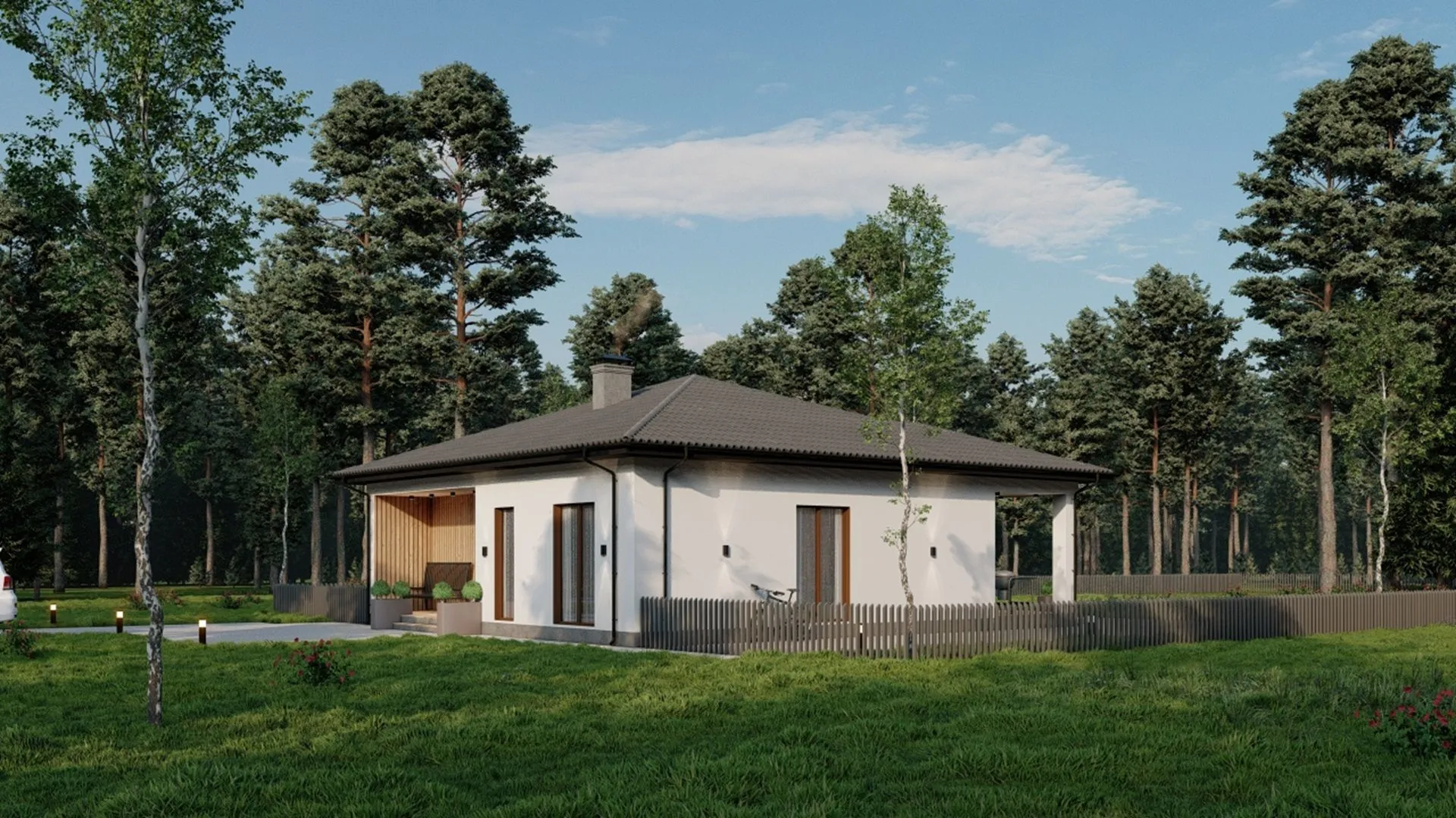 Одноэтажный жилой дом СВ-116 в декоративной штукатурке