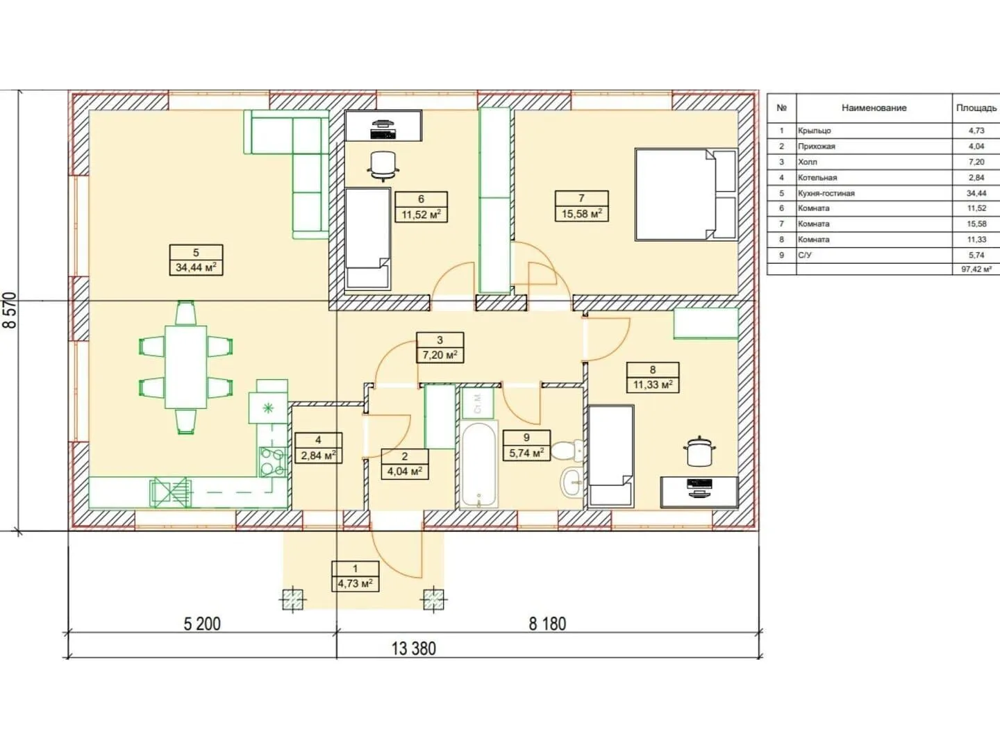 Одноэтажный жилой дом Зевс мини с крыльцом 93 кв.м