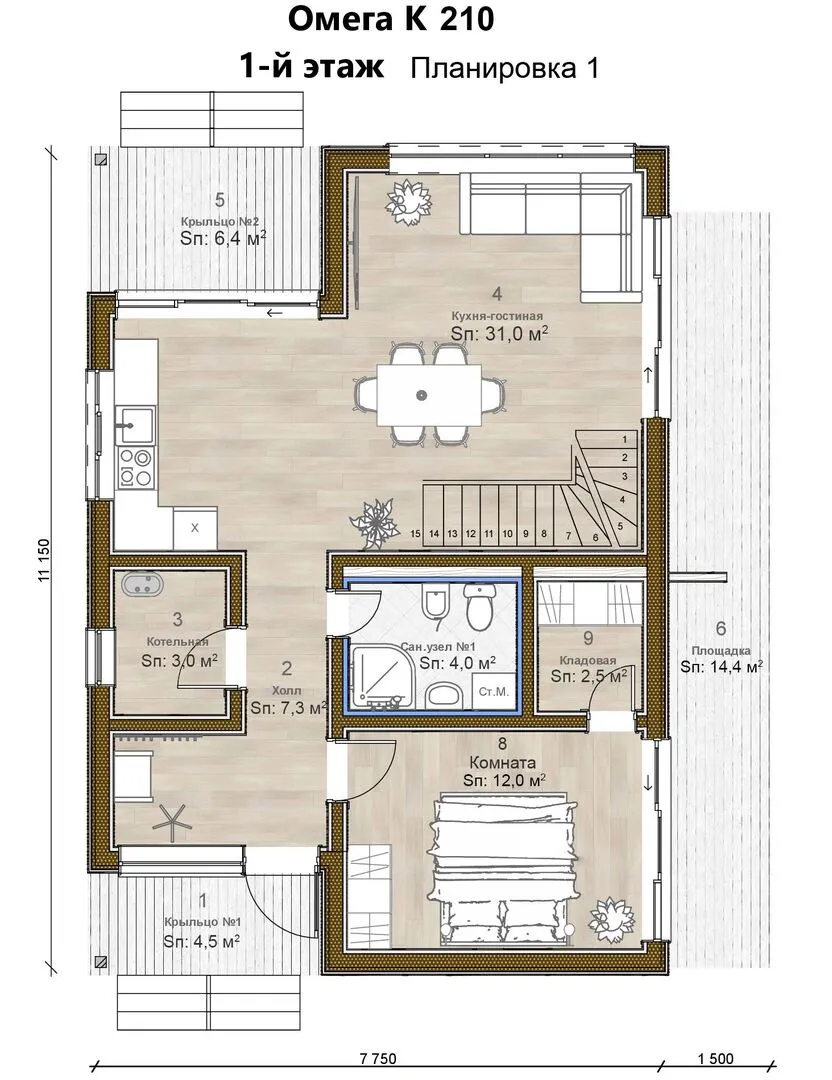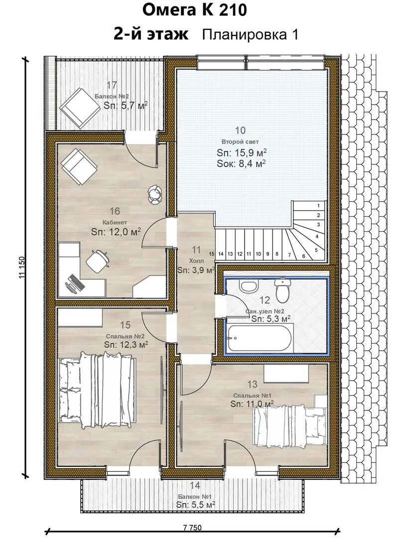 Омега 210 – это уютный двухуровневый объект, воплощающий в себе идеальный баланс европейского стиля и практичности современного жилья. Внутреннее пространство пропитано светом: большие окна на каждом этаже открывают панорамный вид на соседние луга и зелёные просторы, а два балкона и просторная терраса приглашают проводить время на свежем воздухе, будь то спокойный вечер у костра или яркое лето на солнечном грилевом раскрёже. Всё пространство рассчитано на круглогодичное проживание, так что вам будет удобно в любой сезон — от благородной зимой до живописной весны. Классическая двускатная крыша и прочный деревянный каркас придают дому ощущение надёжности и тепла, в то время как европейский фасад с лаконичными линиями подчёркивает его элегантность и современную эстетику. Отсутствие прицепного гаража и чердача не мешает ощущению простора, а просторная веранда и уютные лоджии создают идеальное место для семейных встреч. Это идеальный вариант для тех, кто ценит гармонию между уютом, функциональностью и эстетикой, и ищет дом, который можно назвать своим собственным уголком рая.