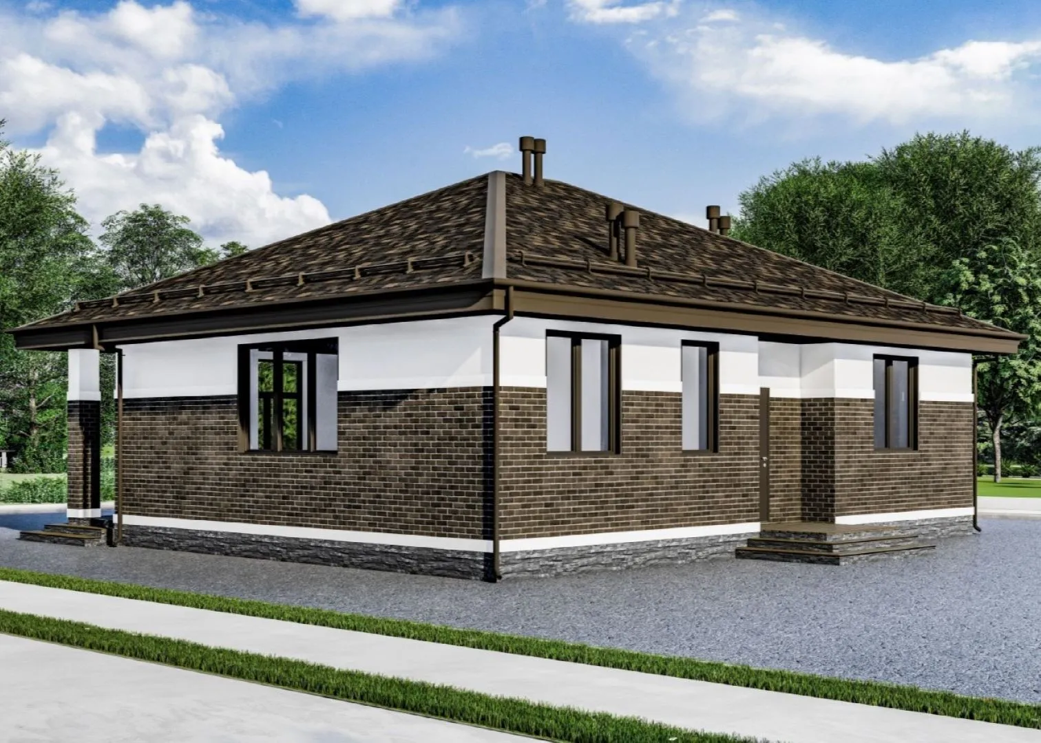 Насладитесь уединением и уютом в нашем элегантном одноповерхном доме «Оптимальный D110» – идеальном решении для тех, кто ценит гармоничную совместимость комфорта и европейской эстетики. Величественный вид с четырёхскатной крышей вальмовой формы подчеркивает стиль, а окна, обрамлённые современными рамами, пропускают к дому много света, создавая ощущение воздушности и свободы. С внутренним пространством, рассчитанным на круглогодичное проживание, вы ощутите тепло и безопасность: мягкие газобетонные блоки стен обеспечивают шумо‑изоляцию и энергоэффективность, а открытая планировка и современная фурнитура создают просторы для творчества и развлечений. Уютный балкон с лоджией привернёт внимание любителей живой природы, а просторная терраса станет идеальным местом для летних барбекю и тихих вечерних бесед. Дом «Оптимальный D110» без лишних шумных деталей – там нет пристроенного гаража, чердачных помещений, а также веранды, что позволяет сосредоточиться только на главном – вашей семье и комфортной жизни. Приходите в этот уголок европейского стиля, где каждая деталь отвечает на запросы современного человека, ищущего качество и душевное тепло в одном доме.