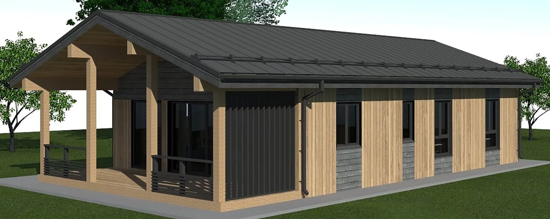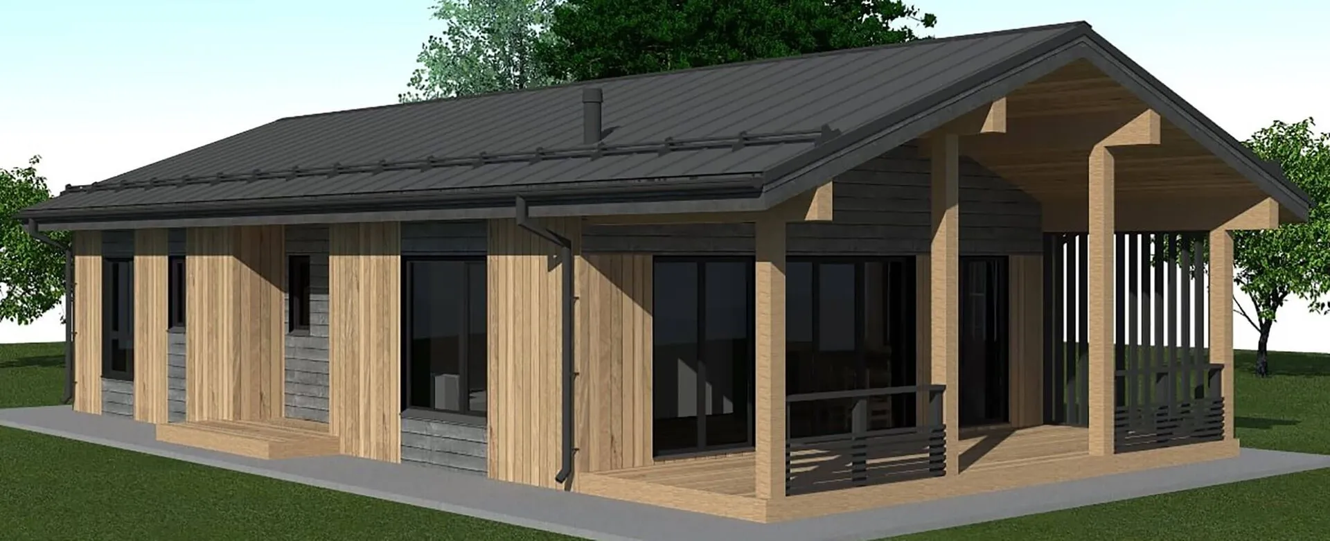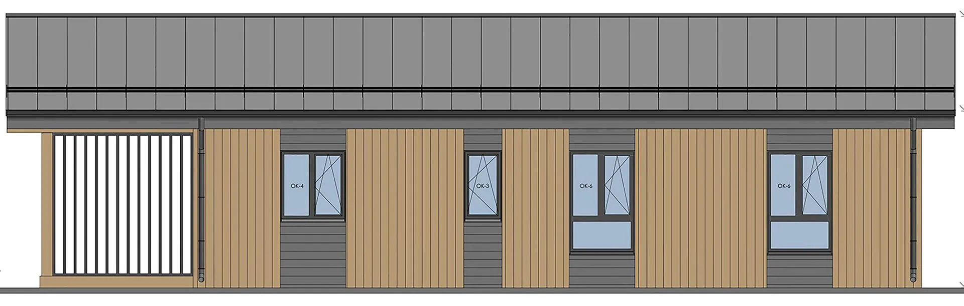 Дом с широким остеклением и деревянными элементами отделки S3-122-1