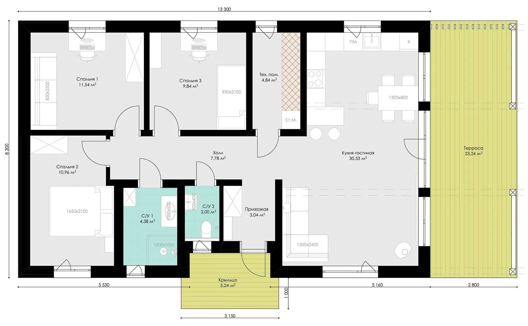 Площадь дома 108 м2