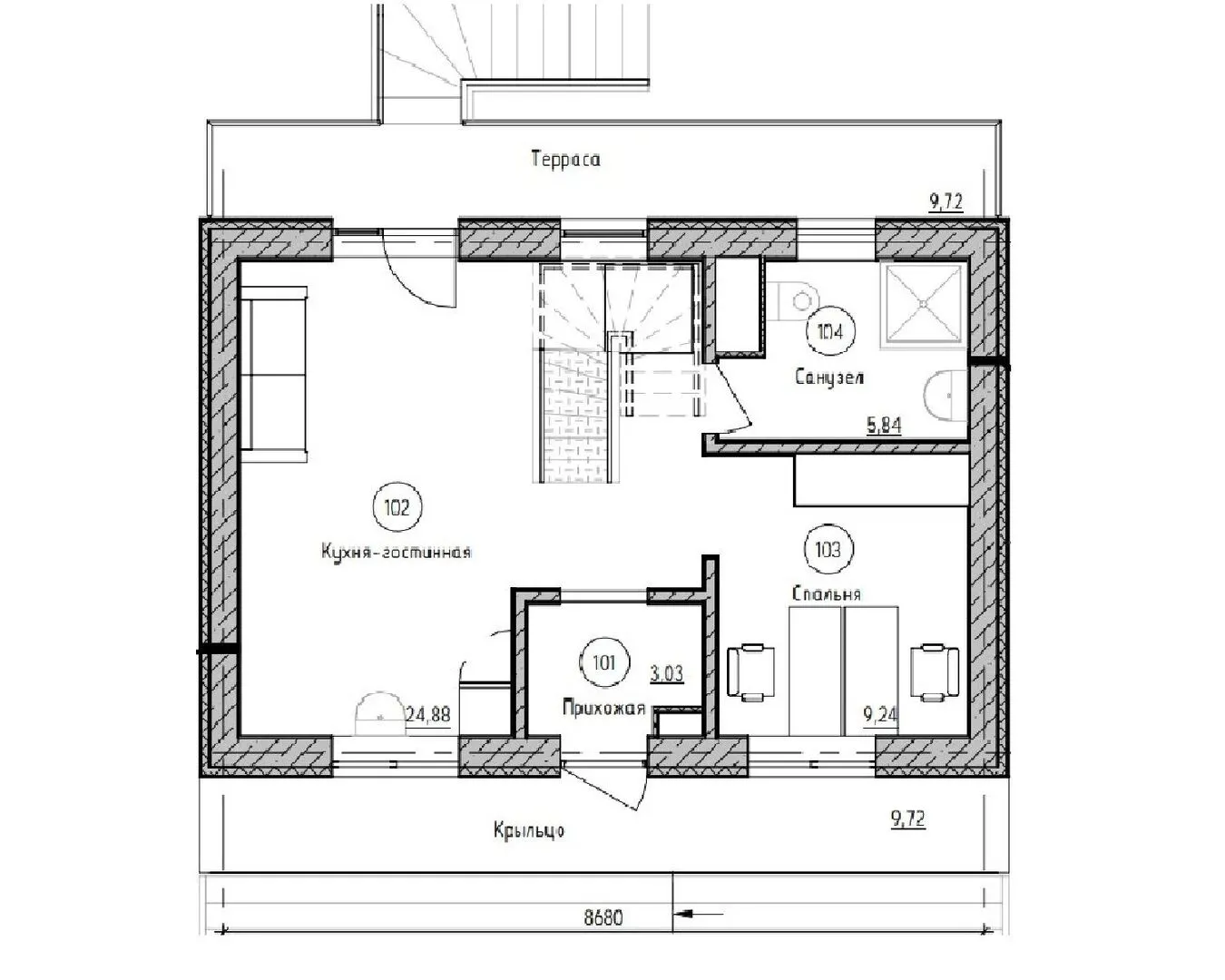 Утончённый уголок уюта, где современный комфорт встречается с очарованием стиля Barnhouse. Этот двухэтажный дом, построенный из керамического блока, восхищает своей крепкой, но в то же время светлой фасадной стеной, придающей ему неповторимый скандинавский характер. Двускатная крыша, выполненная в классическом профиле, аккуратно завершает композицию, создавая ощущение защищённости и стабильности. Сразу с первого взгляда вы почувствуете, что в этой квартире можно жить круглый год, не задумываясь о сезонах и погодных условиях. Просторные комнаты обвязаны большим количеством света; открытый план и большие окна продумывают каждый уголок, а терраса, которую вы сможете обставить по своему вкусу, станет идеальным местом для вечерних раздумий, чтения или дружеских встреч. Здесь нет лишних элементов ― дома нет балконов, веранд, чердаков или прицепных гаражей, но это только добавляет ему простоты и элегантности. Становитесь частью уютной, живой атмосферы, где каждая деталь проработана для вашего комфорта. Это – ваш новый дом, где крошечные детали сочетаются в гармоничной целостности, создавая атмосферу домашнего уюта и надежности. Войдите сюда и позвольте себе окунуться в мир чистой, безмятежной красоты.