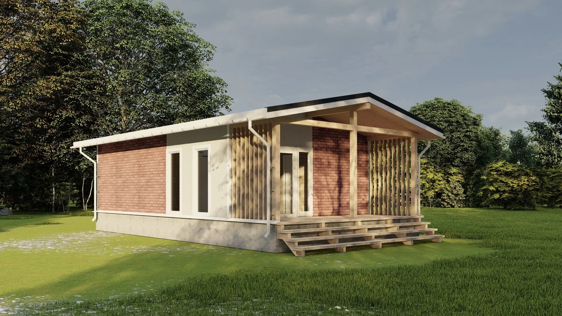 Строительство деревянных каркасных домовСтроительство домовСтроительство домов без балкона или лоджииСтроительство домов без гаражаСтроительство домов без чердакаСтроительство домов в стиле БарнхаусСтроительство домов для круглогодичного проживанияСтроительство домов с верандойСтроительство домов с двускатной крышейСтроительство домов с террасойСтроительство одноэтажных домов