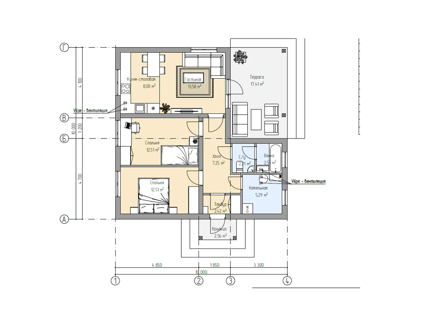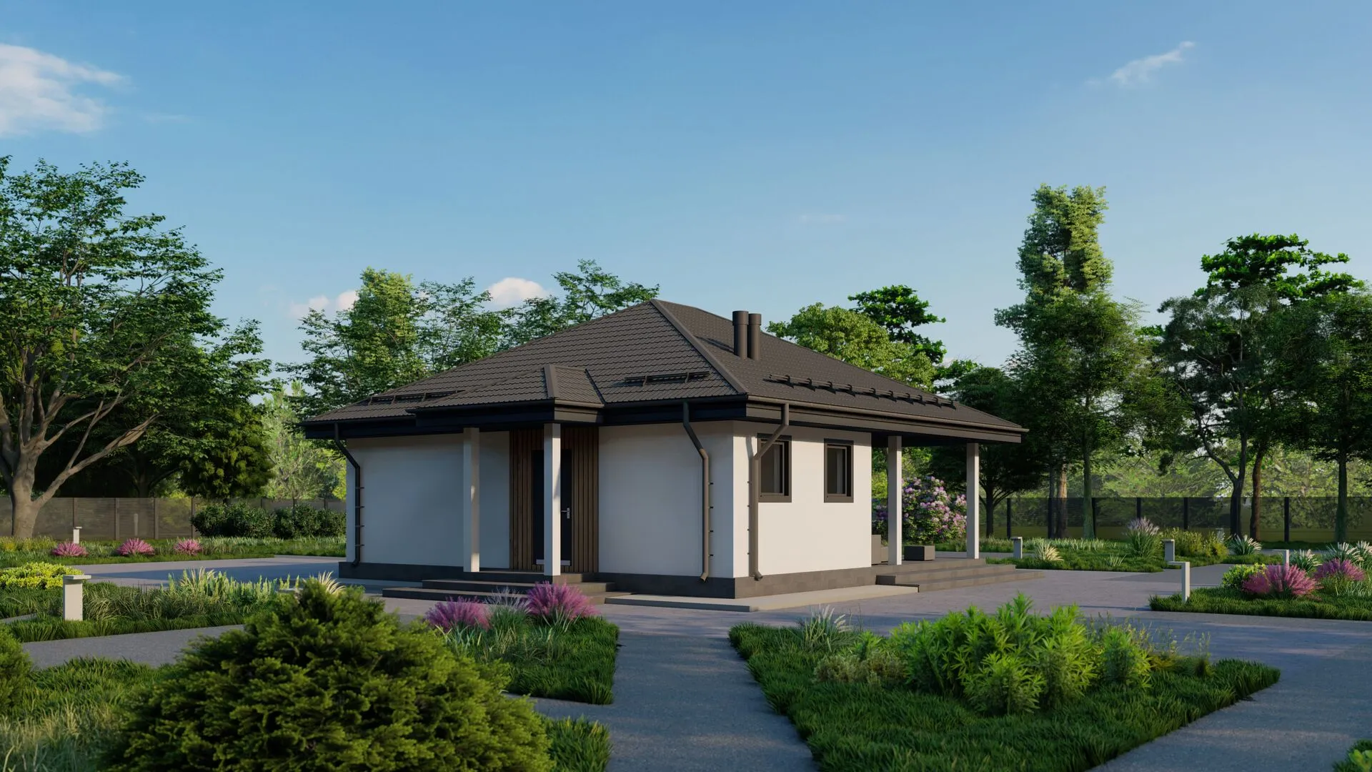 **Классический дом‑в‑одном этаже – истинный оазис уюта и тепла на любой день года** С первого взгляда этот уютный одноэтажный дом привлекает своим элегантным классическим фасадом, выполненным из теплого полистиролбетона. Такие стены обеспечивают непревзойденную тепло‑изоляцию и спокойный микроклимат внутри, позволяя вам наслаждаться идеальной температурой как в жаркое лето, так и в холодный зимний вечер. Широкая четырёхскатная (вальмовая) крыша не только придаёт дому статную силуэтную фигуру, но и гарантирует надёжную защиту от осадков, а наличие чердачной площади открывает простор для самостоятельного ремонта или создания уютного «шедевра» со своей индивидуальной задумкой. **Простор и комфорт рядом – ваш идеальный домашний уют** Планировка предусматривает открытое соединение гостиной и столовой, создавая чувство простора и открытости. Внутренние помещения светлые и воздушные, а наличие роскошного балкона/лоджии убирает необходимость в отдельной веранде – все, что нужно, – это большая терраса прямо за живописным задним двором. Если мечтаете о месте для отдыха на свежем воздухе, то эта терраса превратится в ваш личный садовый уголок, где можно провести барбекю с друзьями или просто отдохнуть после трудного дня. **Ключ к вашему спокойствию – просторные чердачные помещения и безупречная функциональность** Чердачное помещение открывает большие возможности для хранения вещей, создания мастерской или даже собственного домашнего кабинета. Поскольку при проектировании учтено круглогодичное проживание, всё выполнено так, чтобы каждый уголок вашего дома был комфортным в любое время года. При отсутствии прицепленного гаража, при этом дома предусмотрено свободное размещение в частной автостоянке у дома, что не мешает удобству и эстетике. Пришло время встретить свой уголок уюта в стиле, который никогда не выходит из моды. Не упустите шанс увидеть лично, как классика встречается с современными технологиями в этом уникальном доме. 🌿