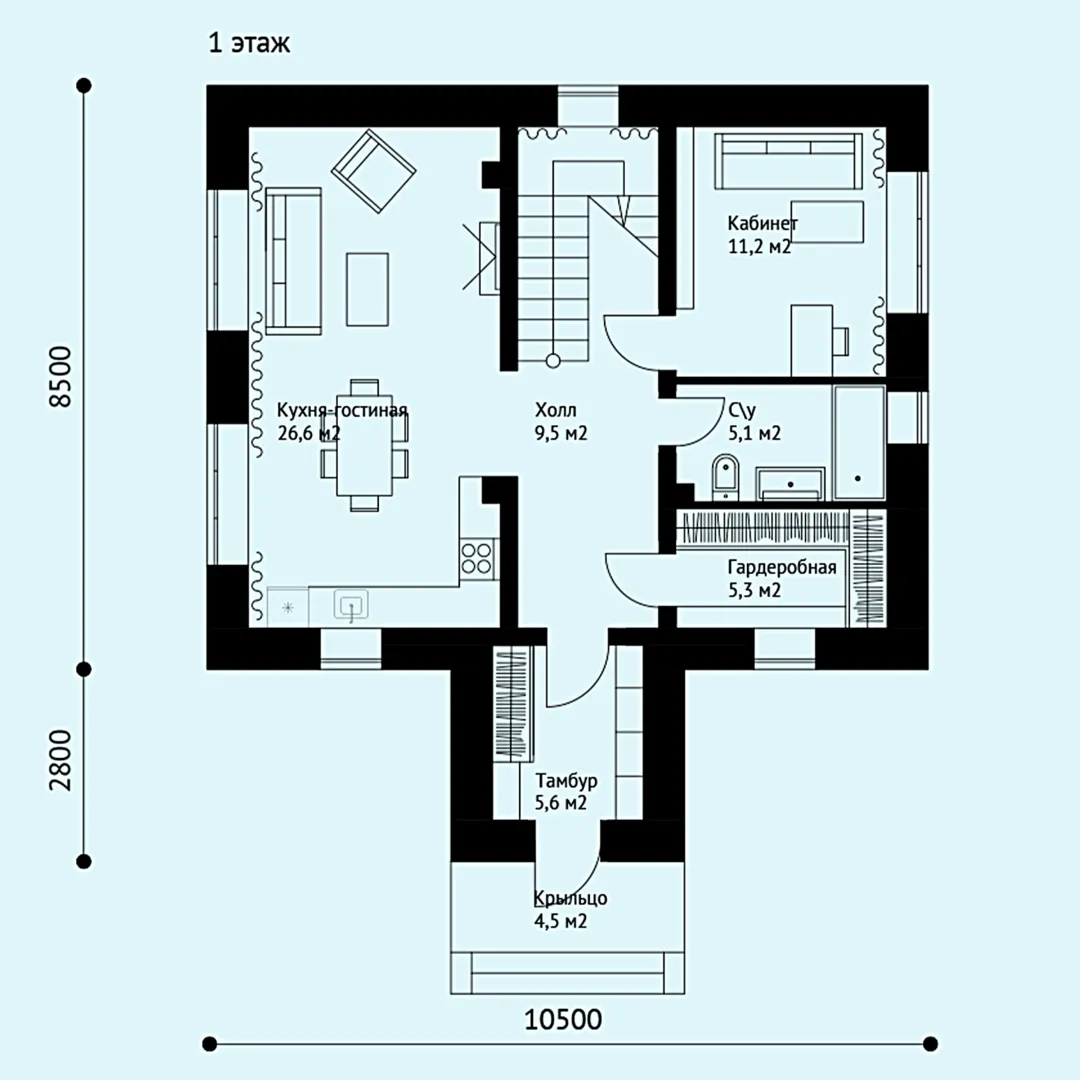 Проект №3 Двухэтажный дом их кирпича