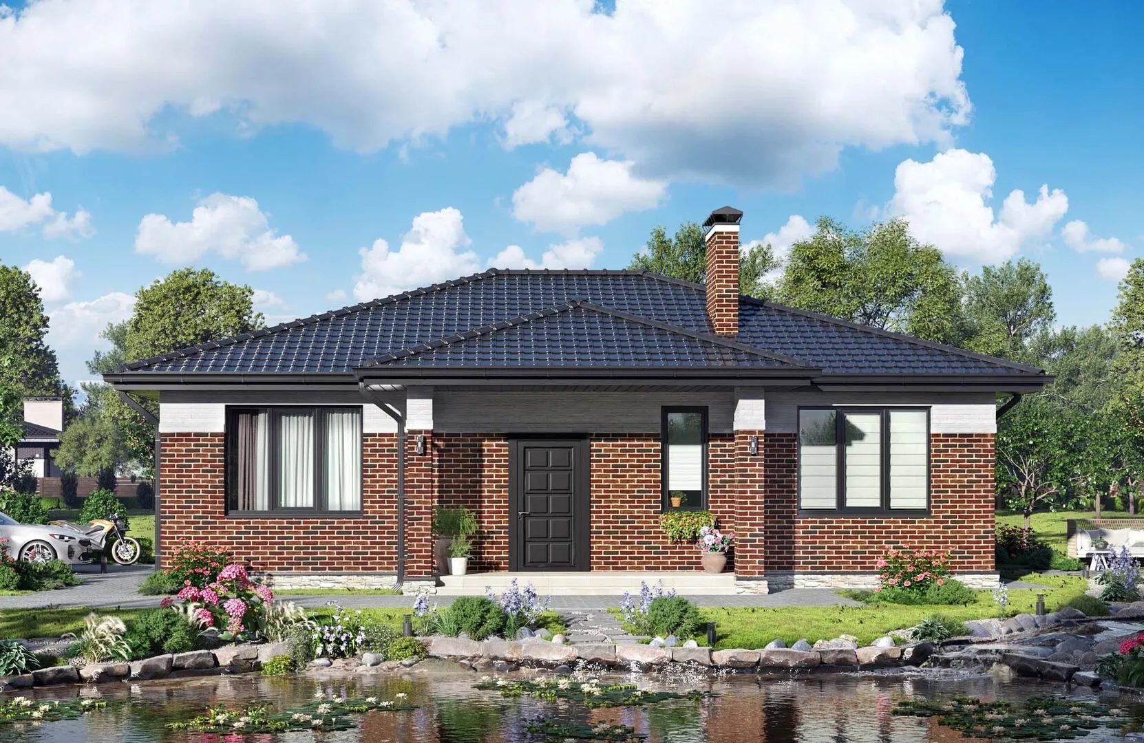**Проект №304‑2** – это воплощение тихой классики в уютной, но практичной квартире. В одном надземном этаже раскроется просторное и светлое пространство, идеально подходящее для круглогодичного проживания. Нежные горизонтальные линии фасада, мягкая цветовая гамма и использование газобетонных блоков создают впечатление легкости и уюта, но при этом гарантируют долговечность и теплоизоляцию. Внутри вы найдёте открытое плановое решение: гостиная, кухня и обедённая зона гармонично соединяются, создавая атмосферу свободного общения и семейного уюта. Чёрдачное помещение, стилизованное под уютное студио, можно превратить в личный кабинет или детскую игровую комнату. А небольшая терраса, выходящая из окон спальни, станет вашим личным оазисом для утреннего кофе или вечернего смеха под звёздами. Без лишних «сухих» деталей, таких как балконы, веранда или прицепный гараж, проект сохраняет свою простоту и современную лаконичность. Четырехскатная каркасная крыша с вальмовыми чертами придаёт дому традиционный вид, одновременно защищая всё внутреннее пространство от непогоды. Это место, где каждая деталь продумана, а каждая стена приглашает к жизни.