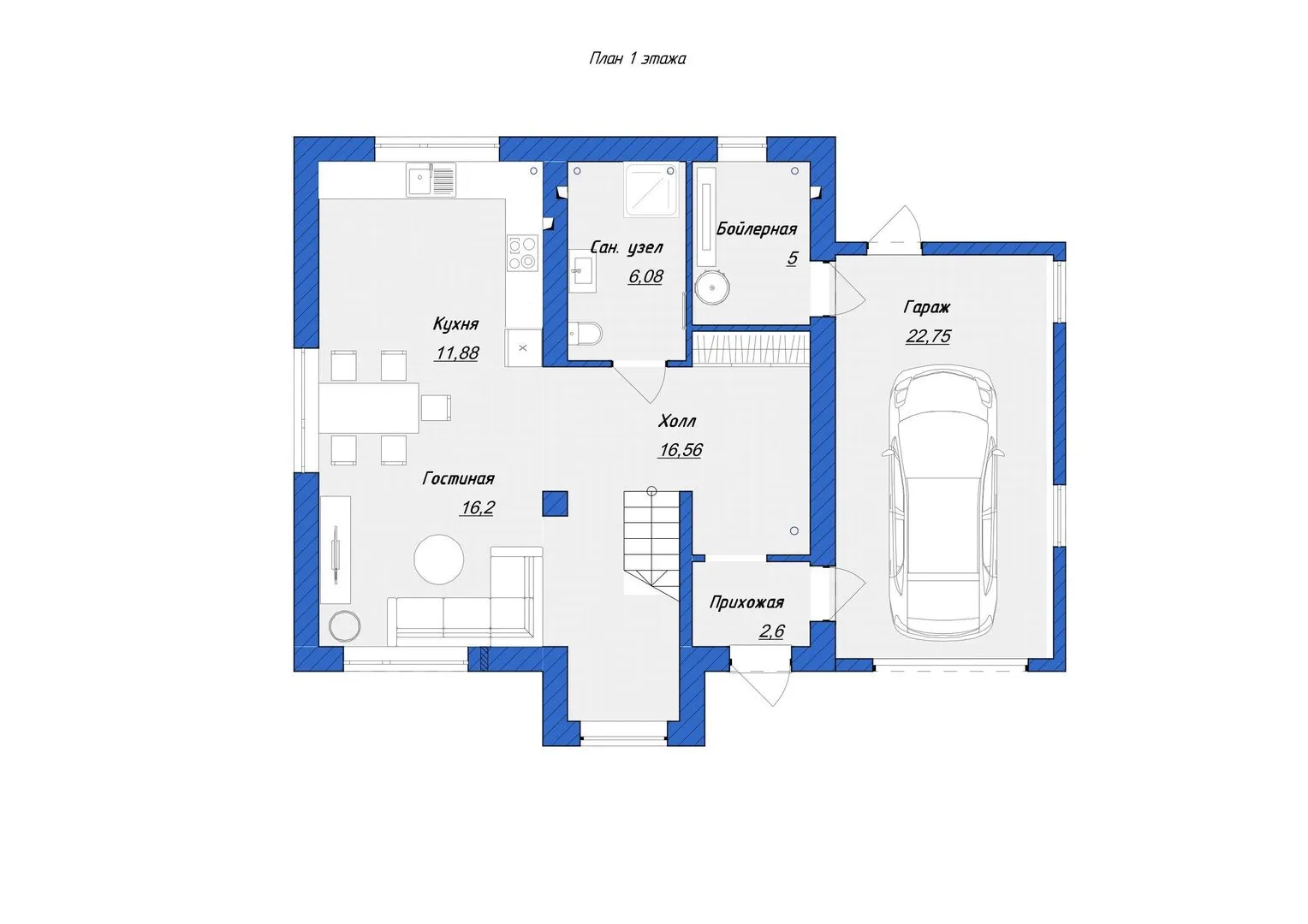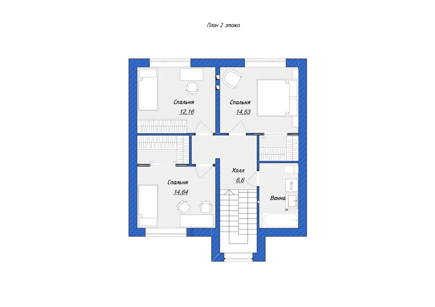 Двухэтажный дом из газобетона 8×9 «B-100»