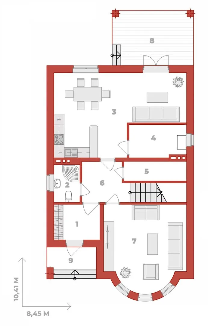 Проект дома КС‑18 — это настоящее воплощение классической архитектурной элегантности, в котором каждая деталь продумана так, чтобы подарить комфорт и надежность круглый год. Два надземных этажа, уютно разделенные пространствами, дарят семейной жизни свободу и гармонию: открытые коридоры, светлые комнаты и площадки для семейных завтраков. Стиль, сочетающий строгость линий с плавными изгибами, создаёт впечатление времени, остановившегося в уюте вашего собственного уголка. Внешняя оболочка дома выполнена из газобетонных блоков, что гарантирует тепло- и звукоизоляцию, а также долговечность конструкции. Многощипковая крыша не только придаёт фасаду традиционный вид, но и обеспечивает надёжную защиту от природных непогод. Особое внимание уделено функциональности: прицепленный гараж и крытая автостоянка позволяют хранить автомобиль и транспорт под одной крышей, а светло-обогащённый чердак превращается в кладовую или уютный уголок для хобби. Терраса, открывающая панорамный вид на сад и окрестности, приглашает к вечерним посиделкам и романтическим прогулкам. Несмотря на отсутствие балконов и веранд, проект сохранил максимальное пространство внутри, позволяя вам наслаждаться каждым уголком вашего дома. КС‑18 — это не просто сооружение, а атмосфера уюта, где классика встречается с современным комфортом, создавая дом, в котором хочется жить и возвращаться.